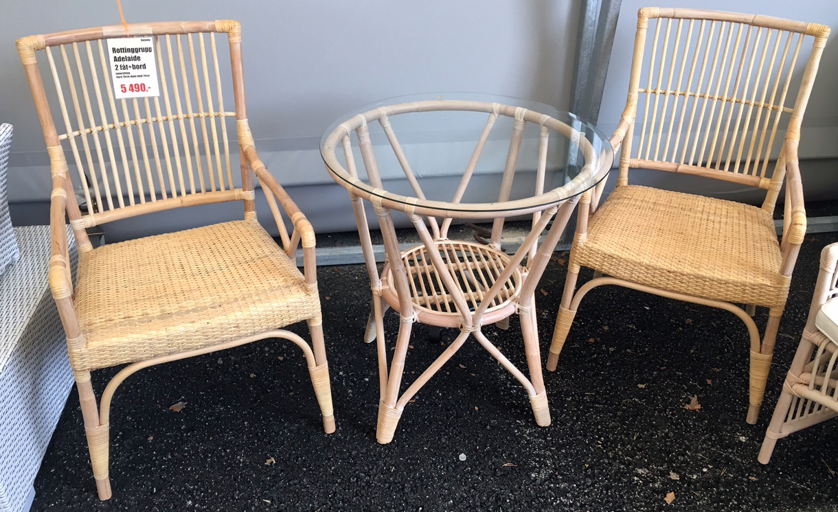 Grupp i naturrotting, 2 stolar och ett högt bord.