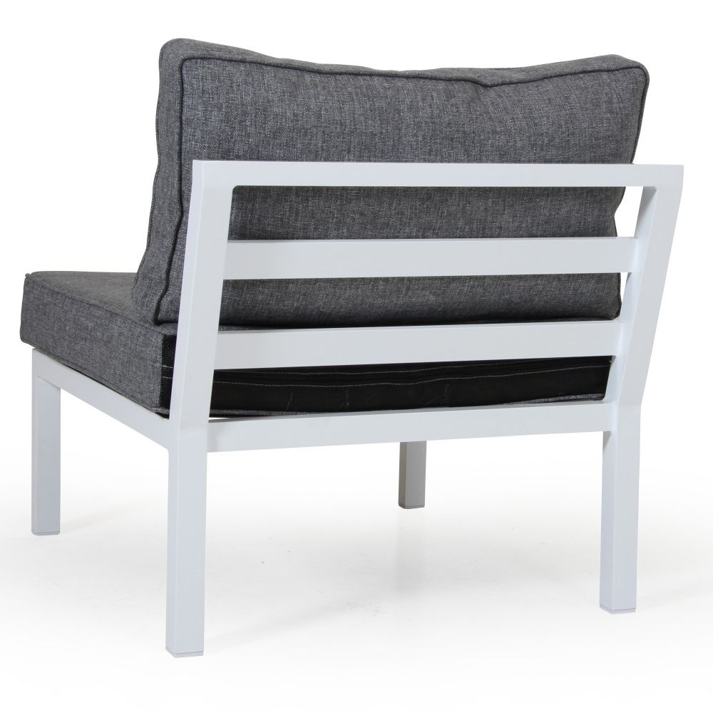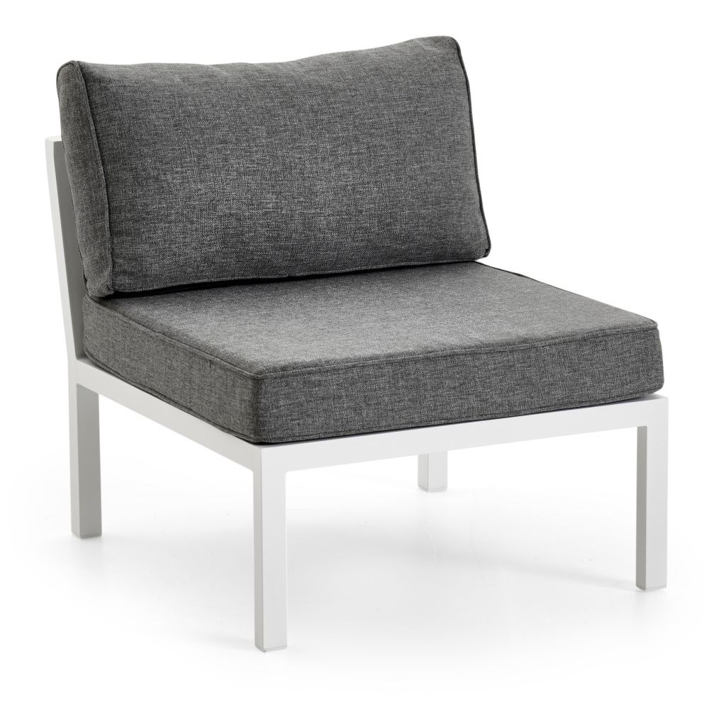 Mittdel till Weldon, passar ihop med hörnsoffa Weldon 2H2. En stilren och lättplacerad soffa i aluminium med matt finish. Soffan har allvädersdynor – perfekt för Nordiskt klimat. En byggbar serie, komplettera med fler mittdelar för en större soffa.