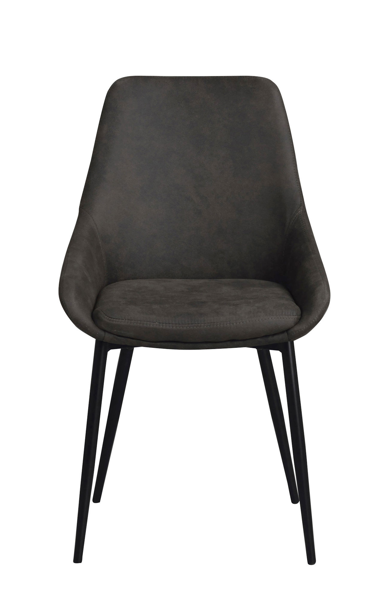 Populära Sierra stol i modern design med skön sittkomfort. Stolen finns i flera olika färger och passar perfekt i våra skandinaviska hem. Här syns den med sits i mörkgrått microfibertyg. Tyget har hög slitagenivå och stolen har tåliga ben i svart pulverlackad metall. Sierra stol passar utmärkt runt matbordet men även som udda stol i hallen, sovrummet eller till skrivbordet.