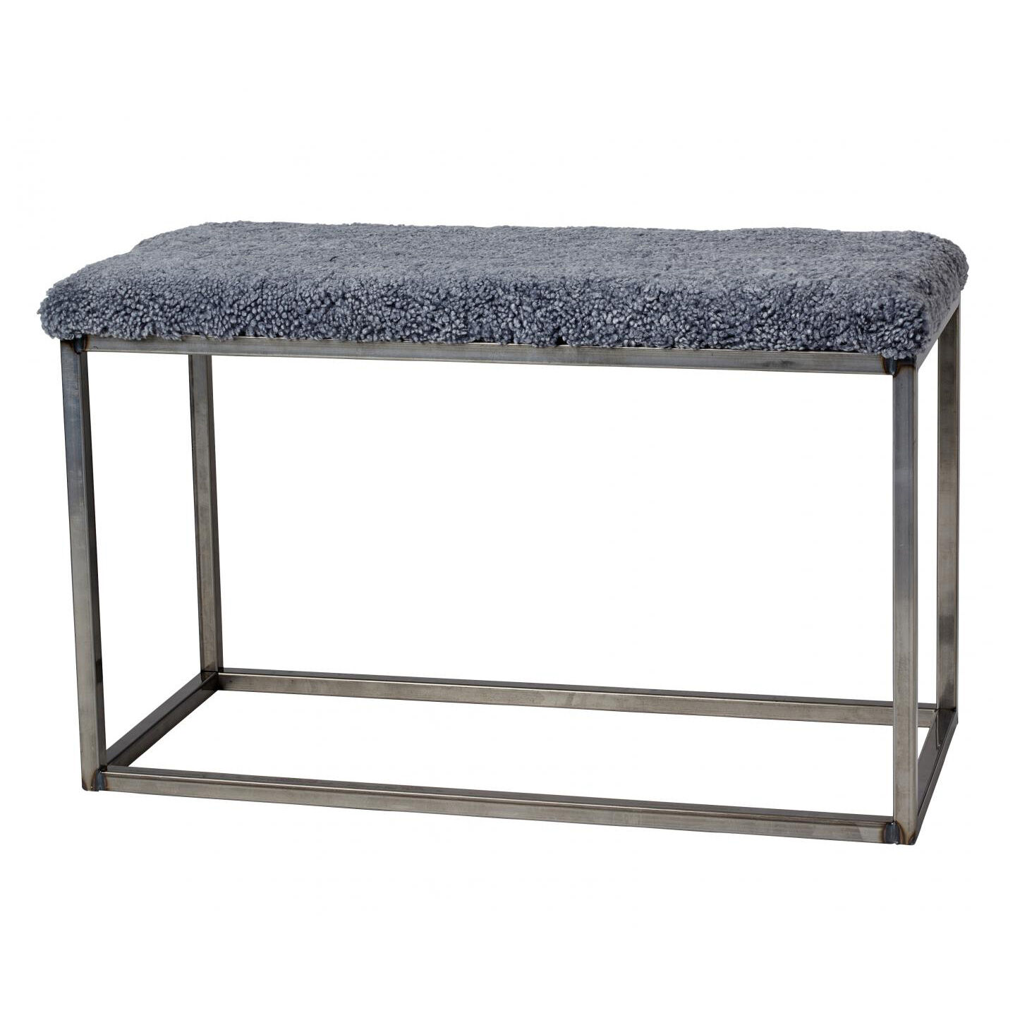 Bänk i klassisk skandinavisk design. Dyna i fårskinn från Australien på ett underrede i stål. Använd som en extra sittplats eller som snygg inredningsdetalj.