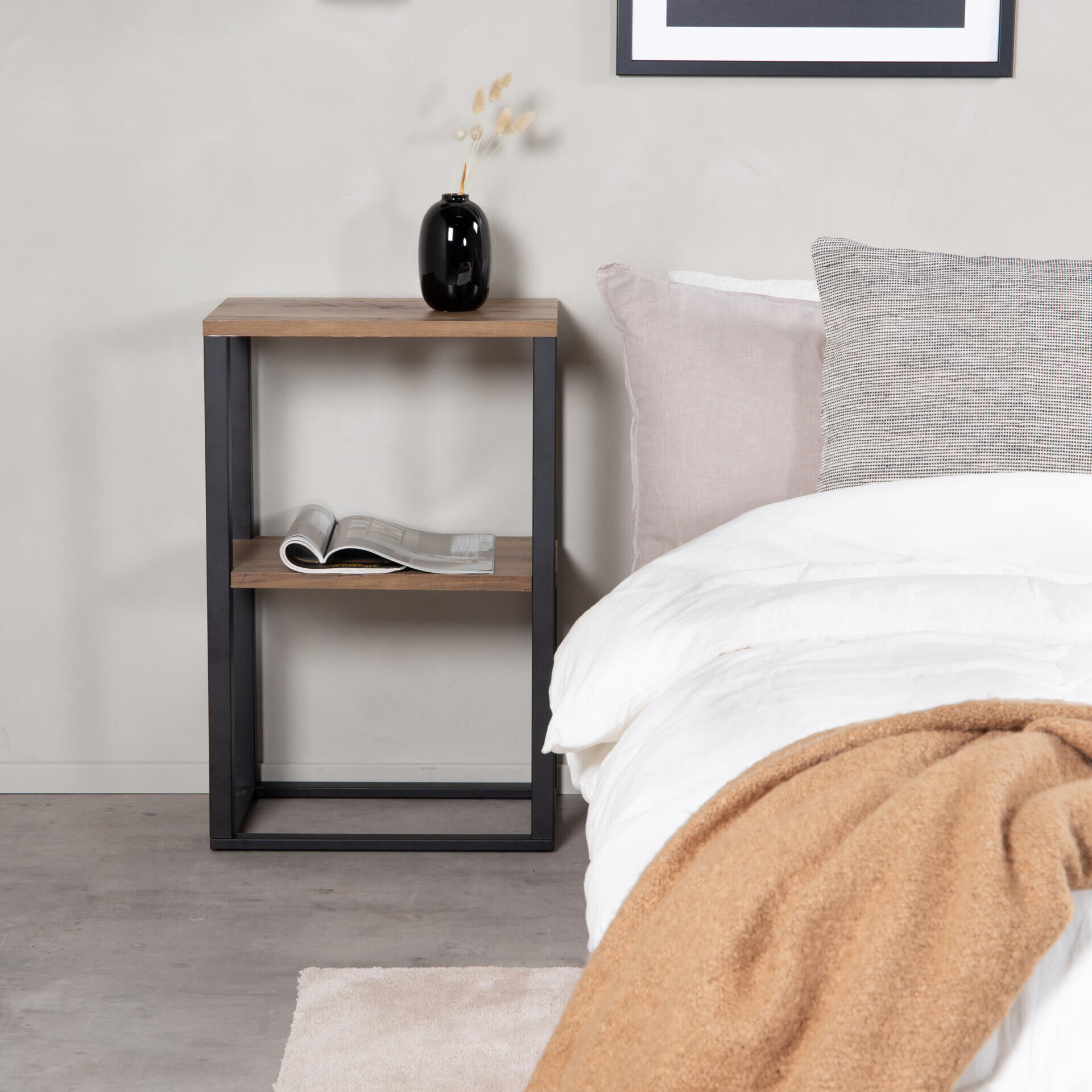 Stilrent bord, nätt och lättplacerat. Med skivor i teak look och underrede i svart metall. Sängbord, sidobord ja du väljer själv – Rise passar lika bra som båda!