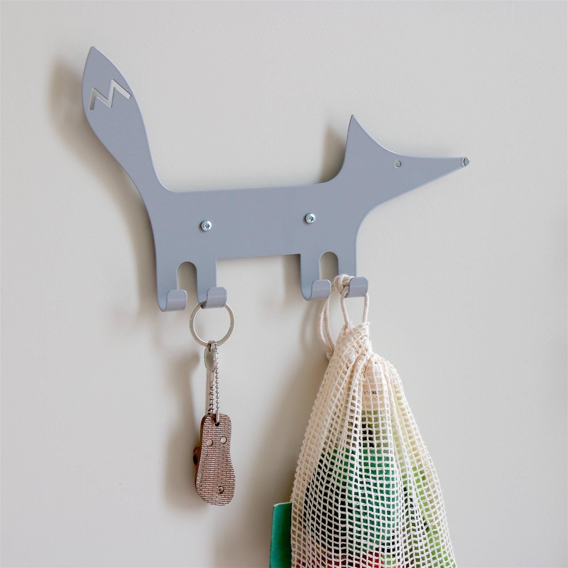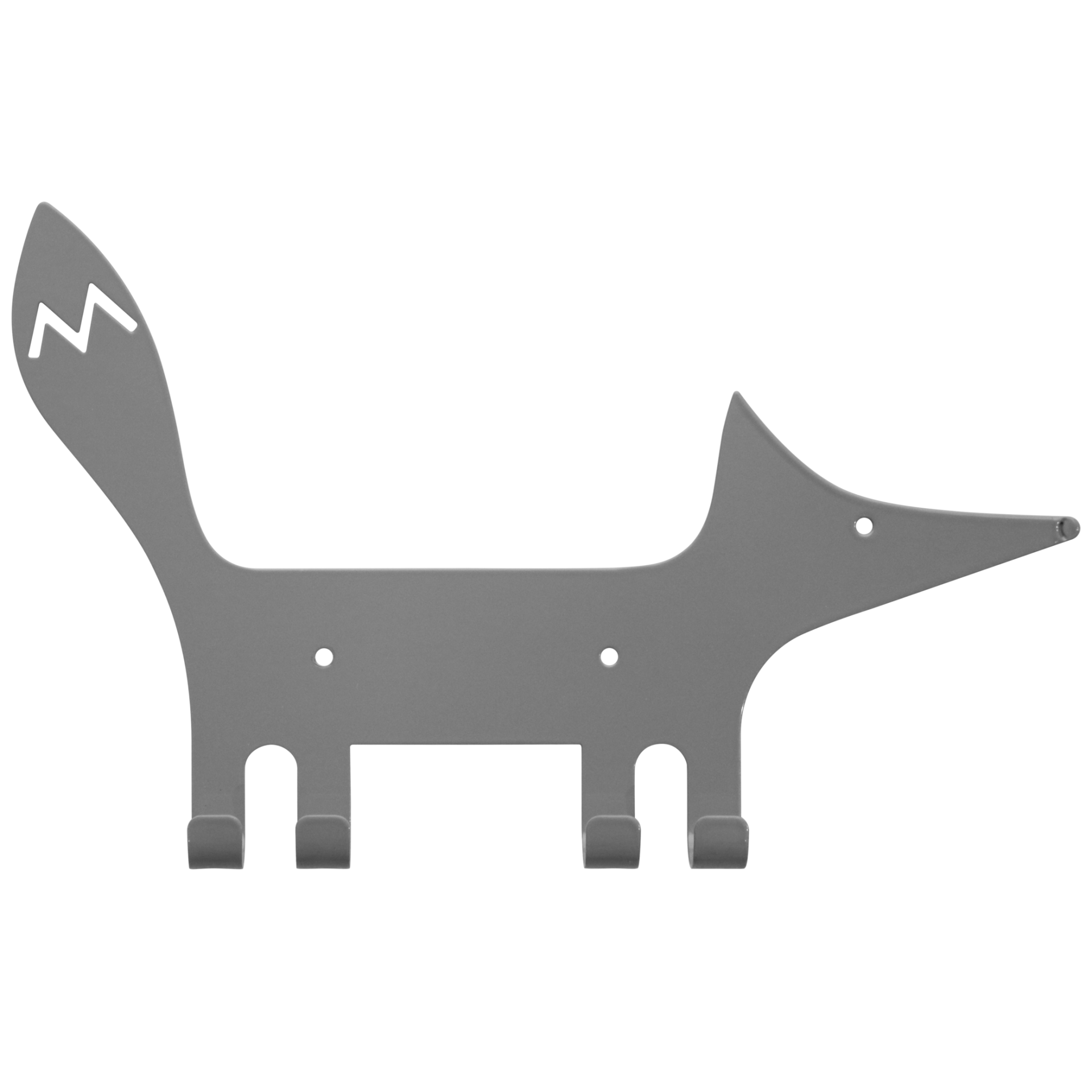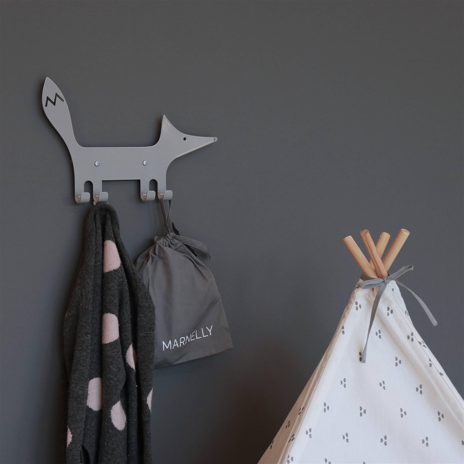 En sofistikerad och lekfull väggkrok i form av en räv, där rävens ben blir till krokar. En dekorativ inredningsdetalj i såväl hallen som i barnrummet. Svensktillverkad i pulverlackerat stål. Levereras med skruvar och distanser. Distanserna ger en fin och effektfull skugga på väggen.