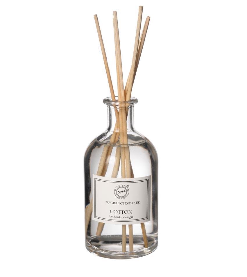 Doftpinne Cotton har en fin vit färg och en god doft av bomull/nytvättat. Medföljer en tjusig förpackning i kartong.