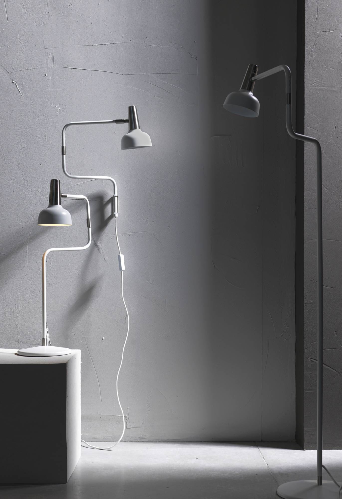 Vägglampa Ray, snyggt designad lampa med detaljer i nickel. Justerbar i sidled samt flexibelt lamphuvud. Ray kan enkelt vecklas ut till dubbel längd när du behöver bättre läsljus i soffan eller i sängen. Textilsladd med brytare.