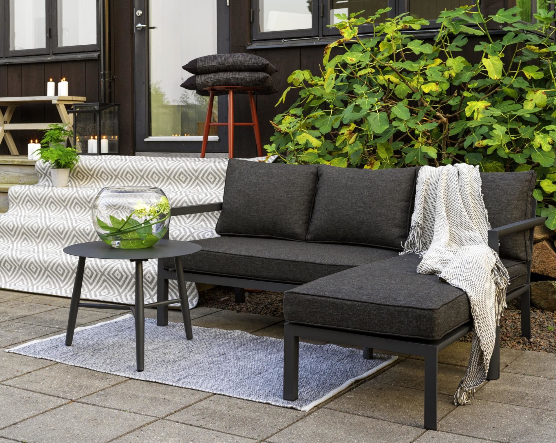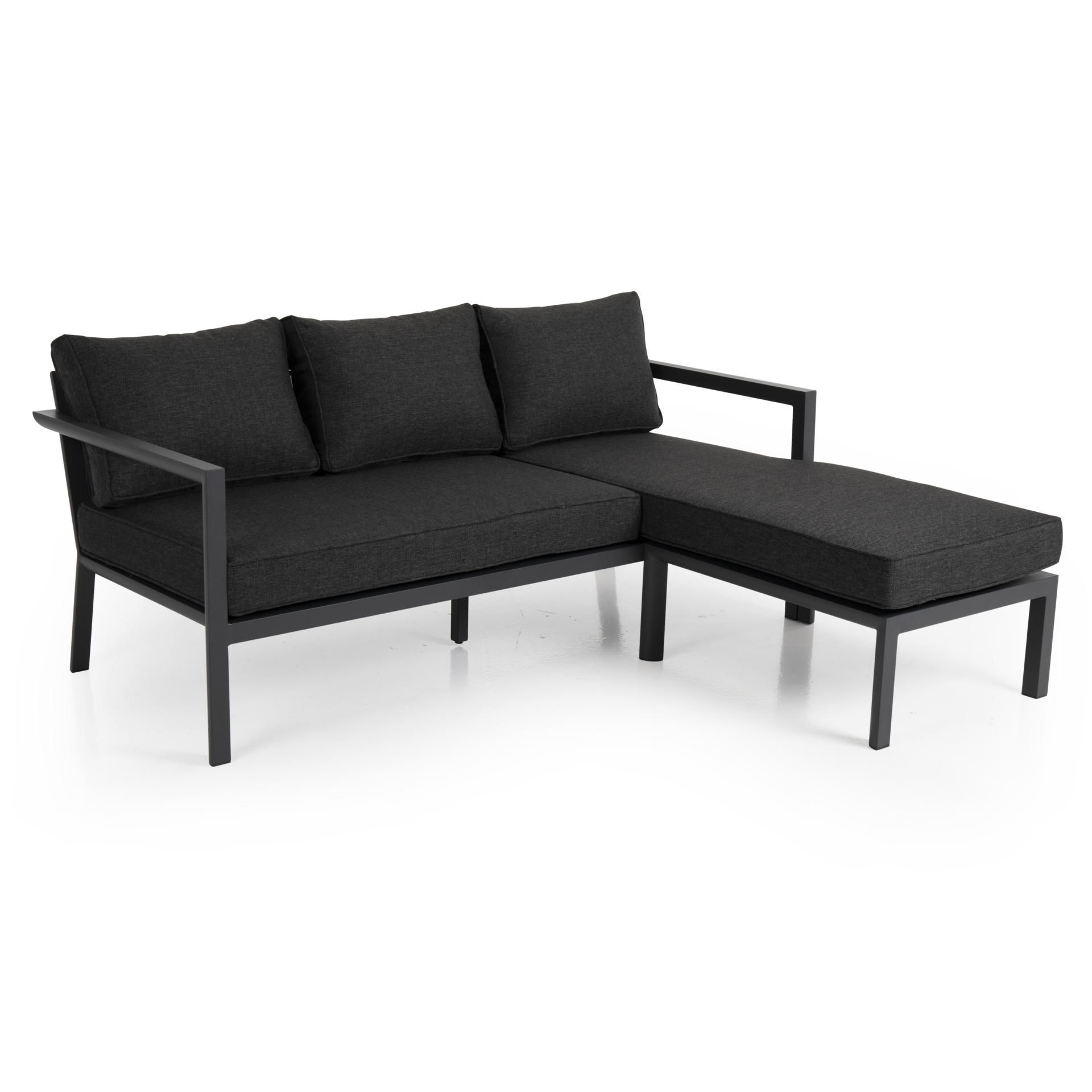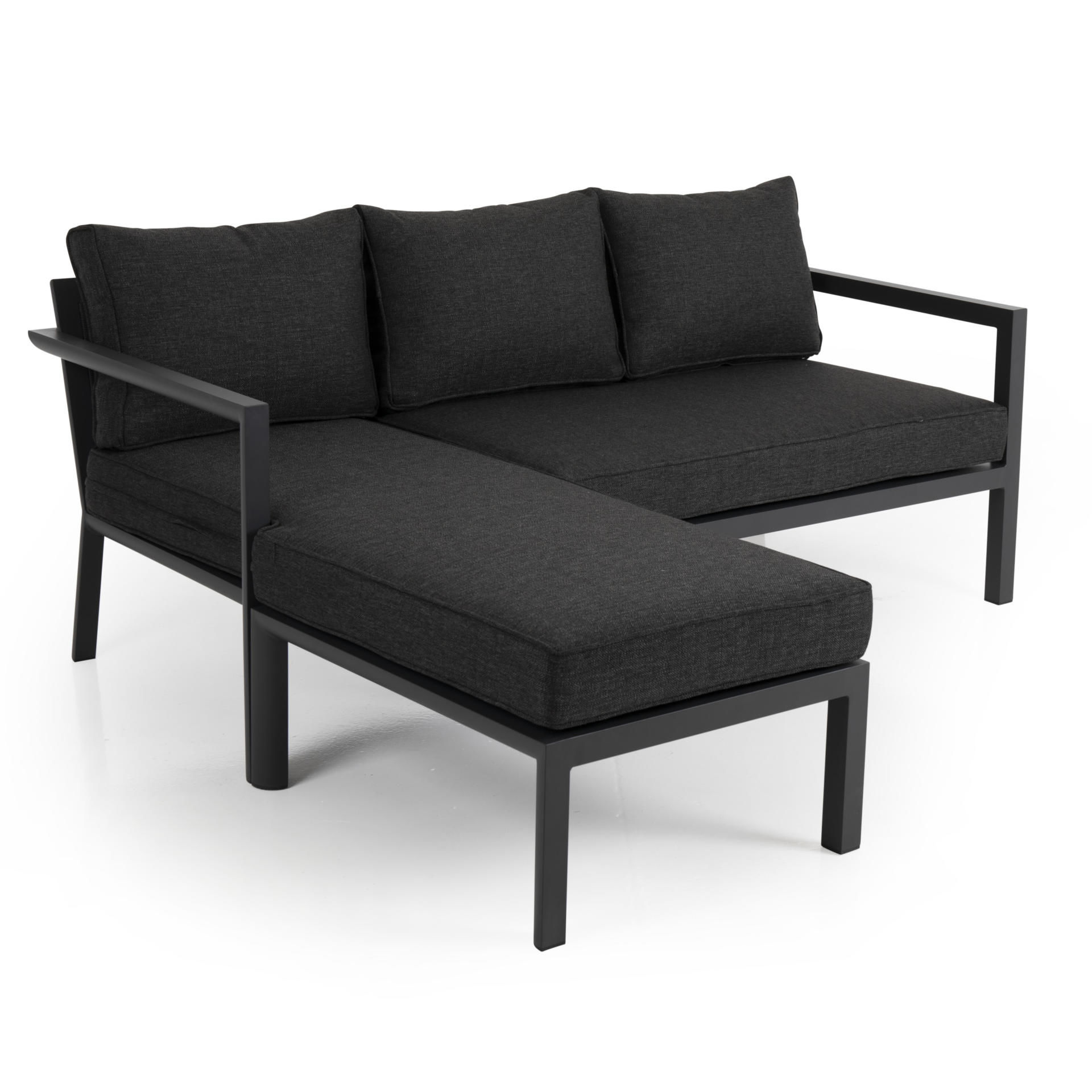 Delia divansoffa passar perfekt på mindre ytor så som balkongen. Divandelen kan lätt flyttas från höger till vänster sida. Modernt formspråk med snyggt utformade detaljer på ben och stomme och utmärkt sittkomfort. Stomme i aluminium och dynor i olefintyg.
