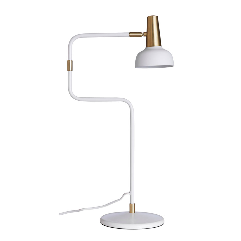 Bordlampa Ray, snyggt designad lampa med detaljer i äkta mässing. Justerbar i sidled samt flexibelt lamphuvud. Lampan har bra ljus och är en snygg inredningsdetalj. Passar som skrivbordslampa, sänglampa eller vart man nu väljer att placera den. Textilsladd med brytare.