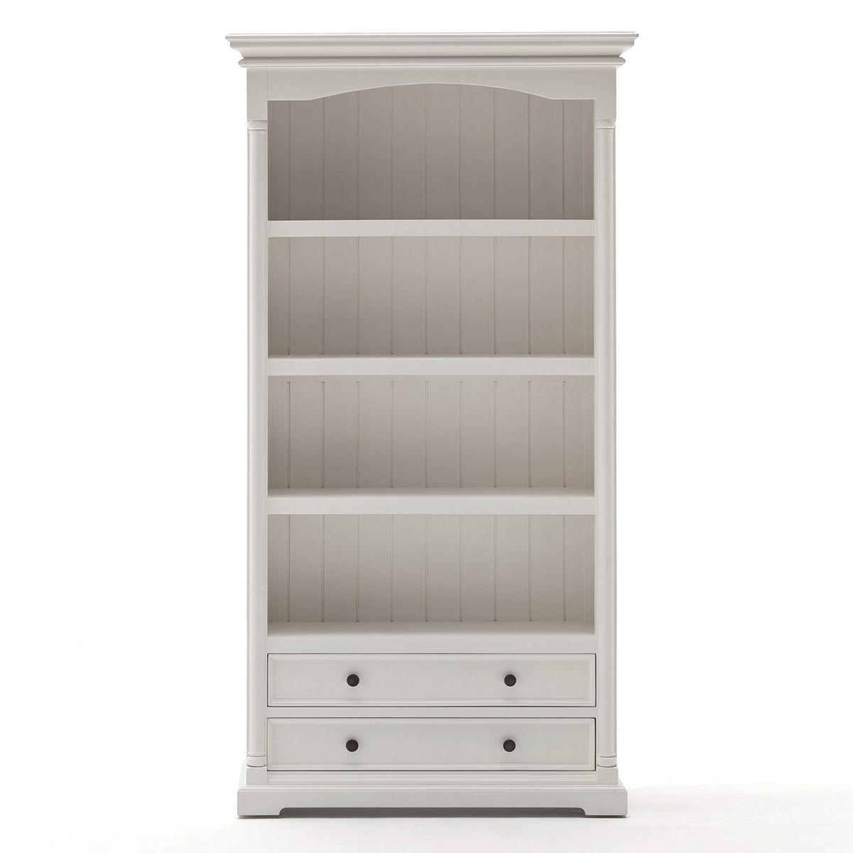 Bokhylla/skåp i massivt vitlackat trä med fina välarbetade detaljer och gott om förvaring! Skåpet har flera fasta hyllplan och lådor nedtill. Möbeln passar in i flera olika stilar och miljöer. Halifax är en serie handgjorda möbler i klassisk stil. Möblerna har en ljus patina där en lite lätt sliten yta kan förekomma längs med kanterna. En av många detaljer som ger möbeln dess rustika känsla. Möblerna kommer färdigmonterade.