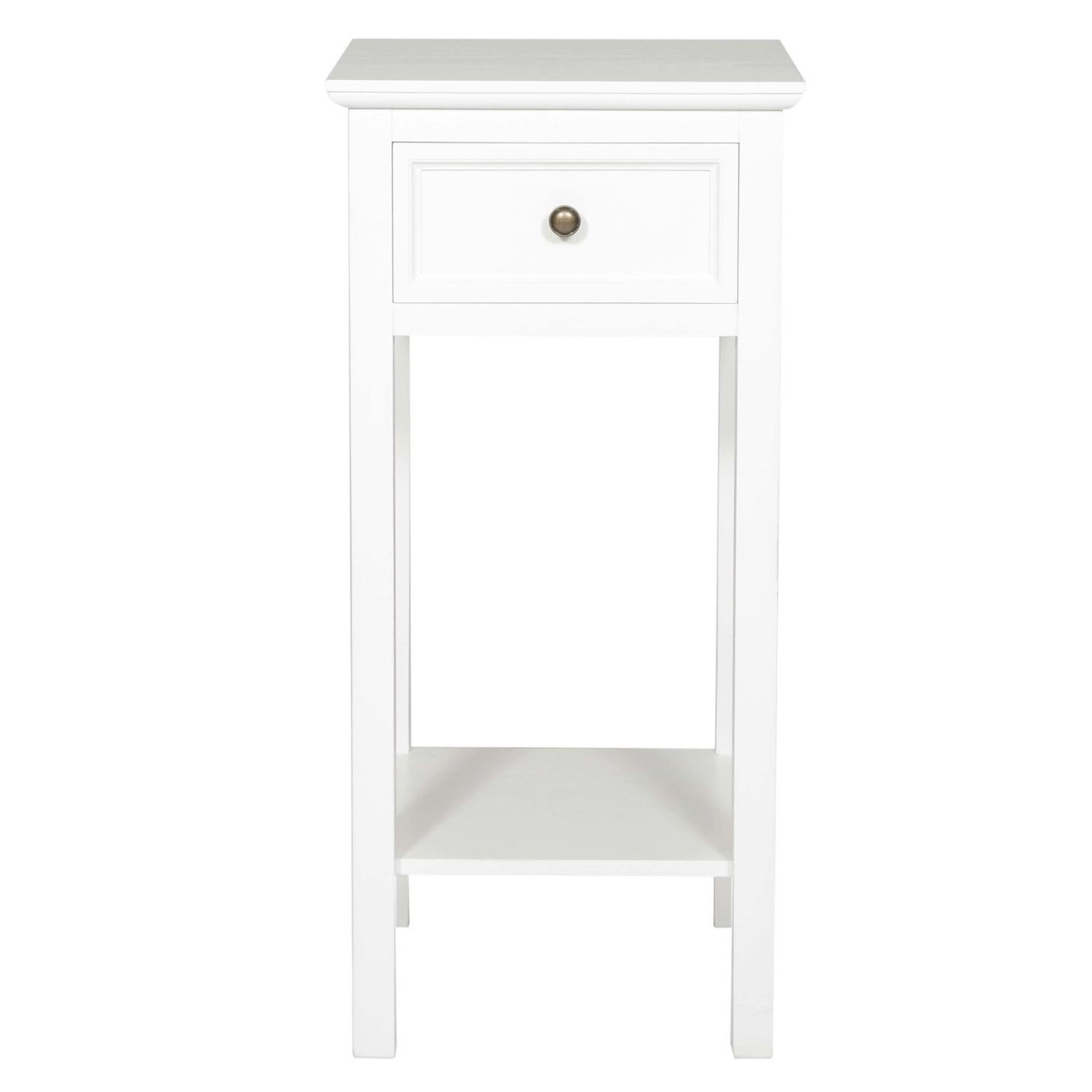 Bristol sängbord är ett nätt sängbord med låda och praktisk underhylla. I snygg antikvit finish.