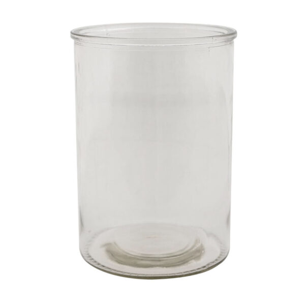 Rund stilren vas i klarglas. Passar lika bra till blombuketten som vacker ljuslykta med ett blockljus – eller varför inte som förvaring.