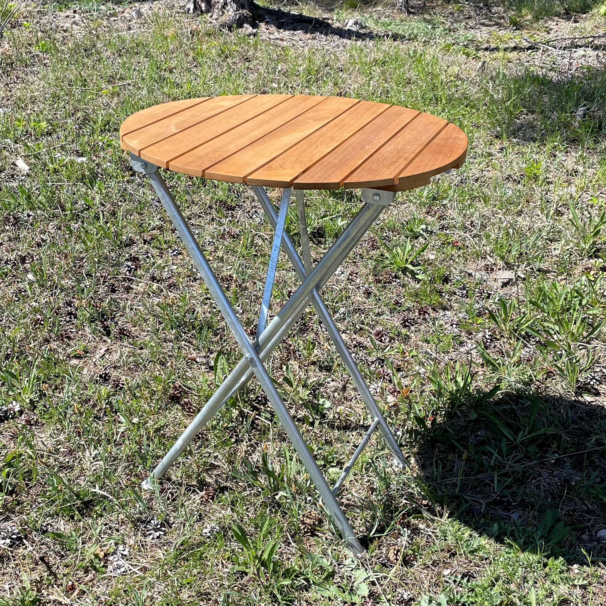 Vacker, stilren och klassisk är ord som beskriver Sigtuna – vår egna kollektion med utemöbler i teak/galvaniserat stål. Fällbart cafébord runt 60 cm i diameter.