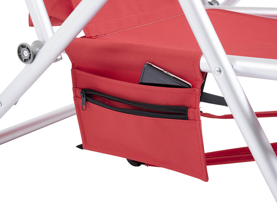 Roxy, sommarens smartaste stol med flera praktiska funktioner. Stolen fungerar som ryggsäck när den är hopfälld och innehåller nackkudde, fotstöd, mugghållare, kylväska, data-/tidningsbord och tre stycken förvaringsfack.