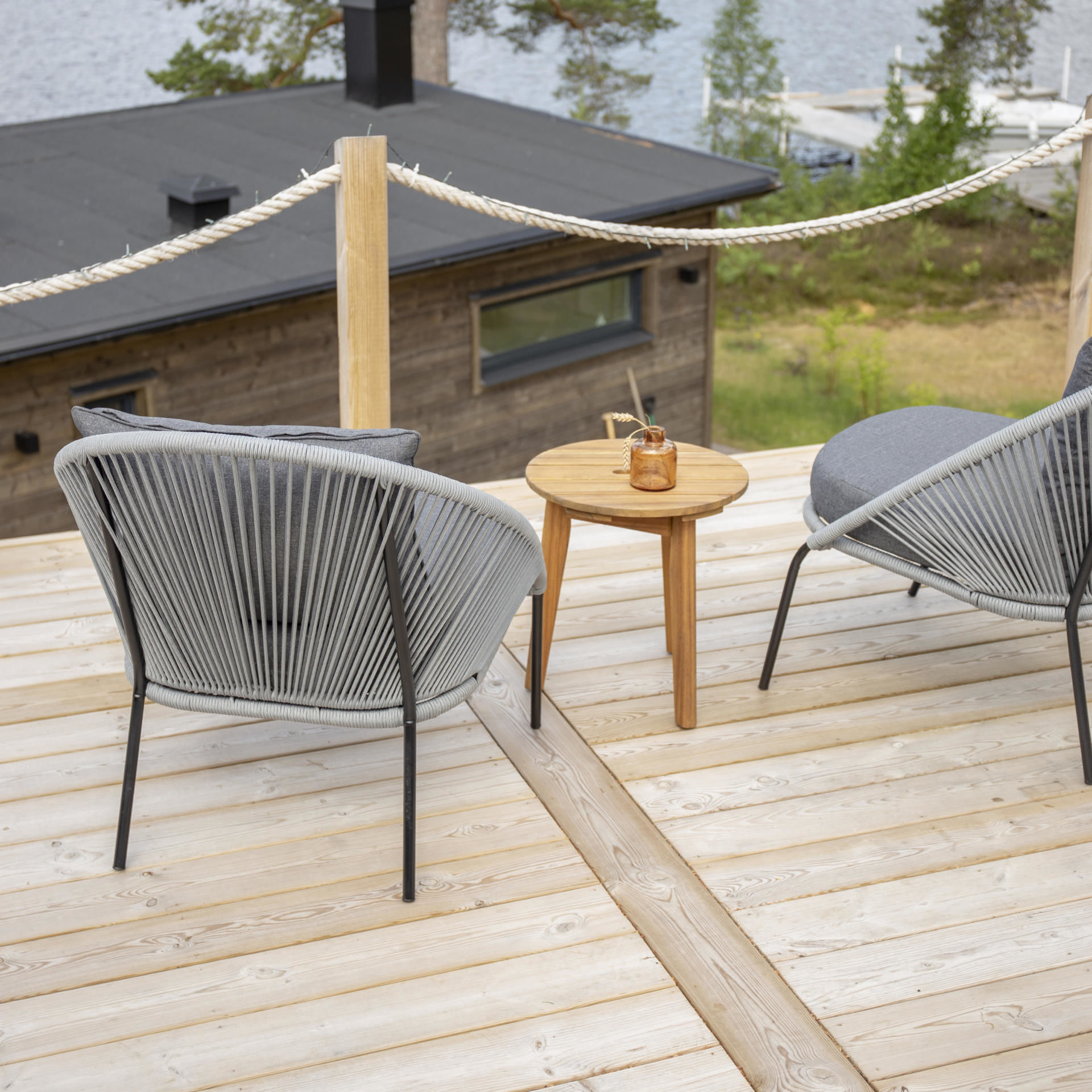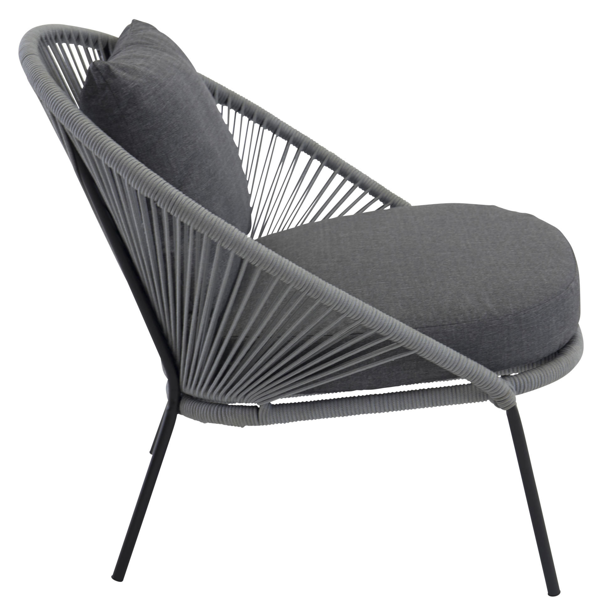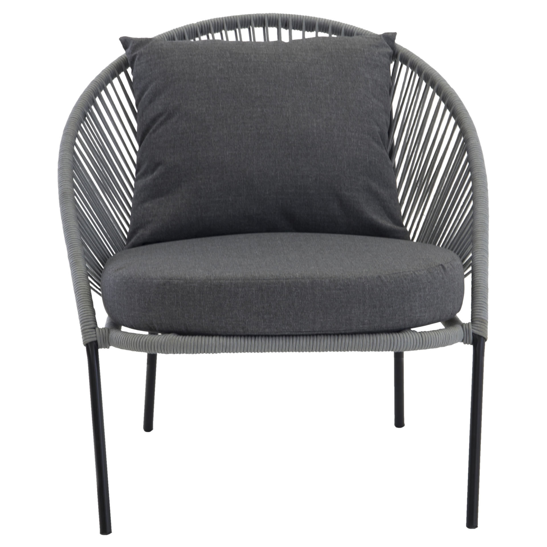 Skön och modern loungestol i grått rep/svart metall inkl grå dynor.