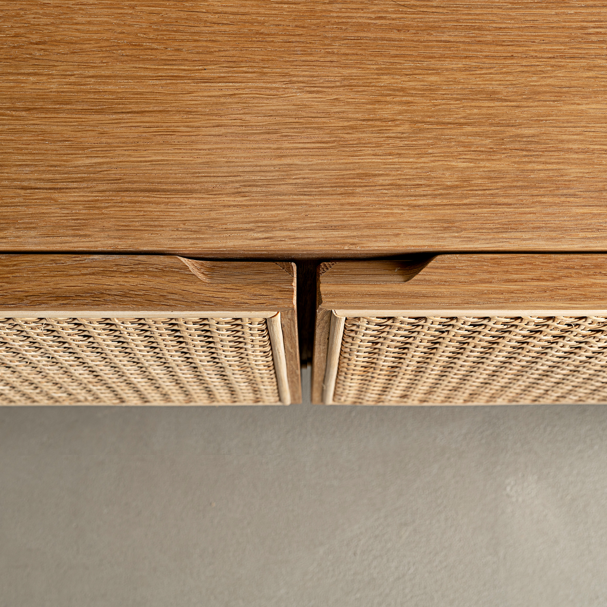 Racquet - Serien som kombinerar rotting med massivt trä. En möbel med strävan efter en tidlös design. Serien är en lekfull med smart design där uttryck och funktion går hand i hand. Designern Jannnis Ellenberger väcker nytt liv I 1920-talets designklassiker, men med nya inslag. Kontrasten av den transparanta rottingen och den massiva träramen utgör grunden i Racquet. En elegant möbel som passar på många ställen, speciellt i vardagsrummet.