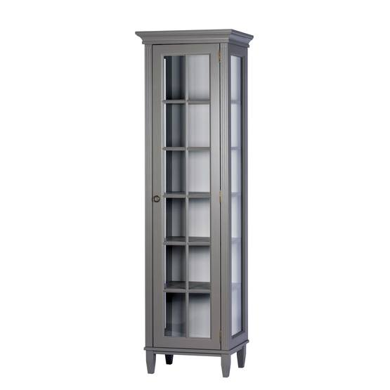 Stockholm vitrinskåp i smal och lättplacerad modell med plats för glas, finporslin, böcker eller dina käraste ting. Vitrinskåpet erbjuds i färgerna Whitewash, Grey och Black och har 5 hyllplan med glasdörrar och glassidor.