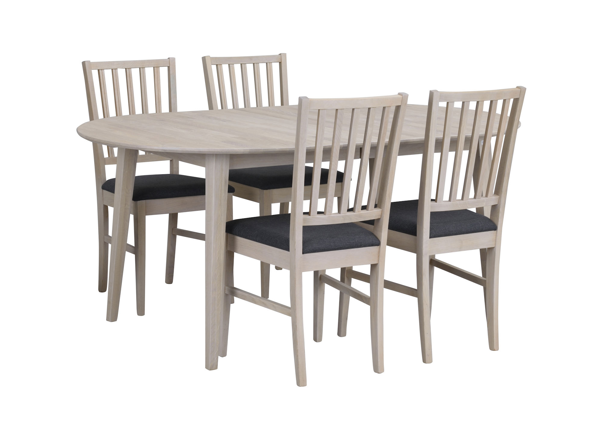 Ett klassiskt ovalt matbord i oljad vitpigmenterad ek med tillhörande iläggsskiva. Bordet kan även kompletteras med ytterligare en iläggsskiva, så med två iläggsskivor blir bordet hela 250 cm. Iläggsskivorna har en sarg som följer toppskivans design, vilket gör att iläggskivorna inte går att förvara i bordet. Matbordet ingår i vår breda Filippa-serie som även har förvaring som passar fint till. Matbordet består av 100% FSC-certifierat trä och är ett bra och hållbart val.