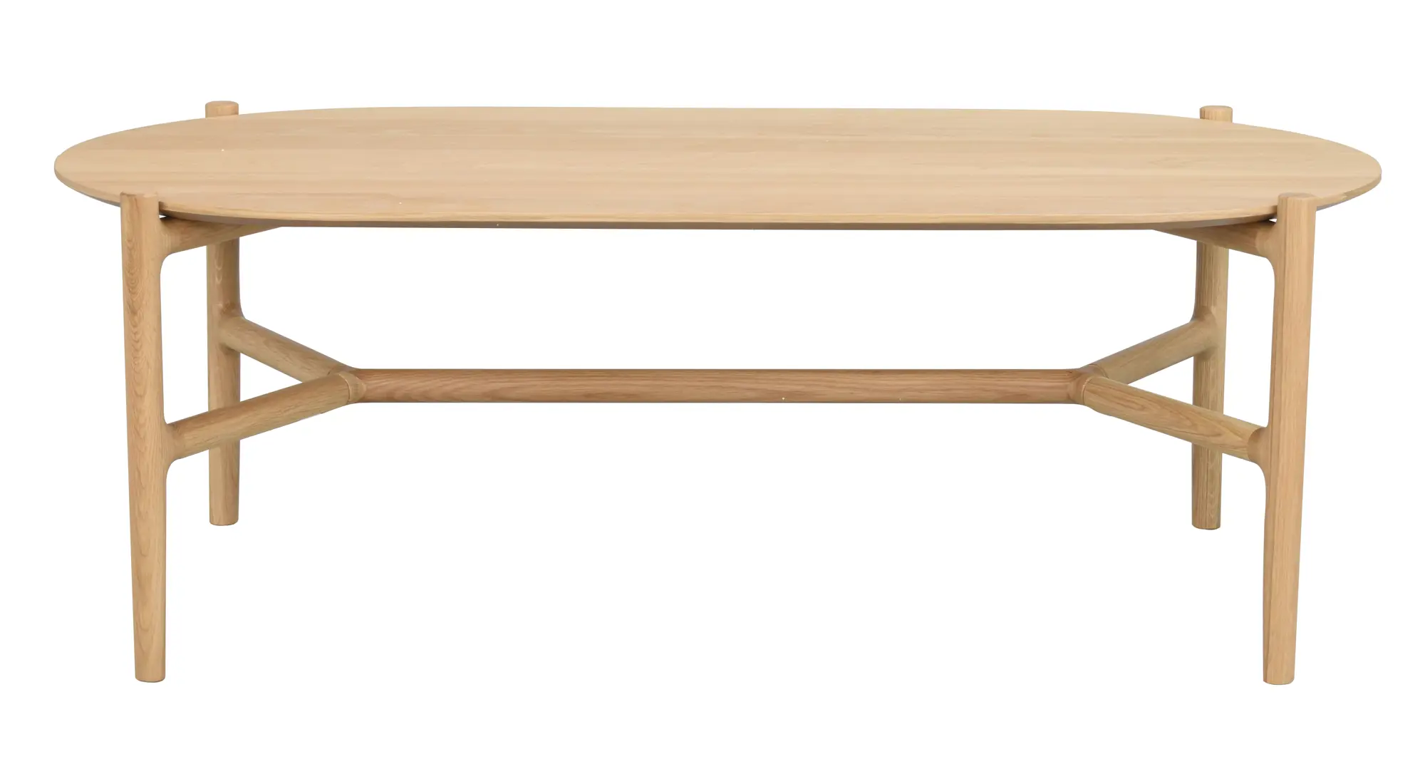 Holton ovalt soffbord 130x65 cm har en bordskiva i lackad ekfaner med formsvarvade ben och underrede av massiv ek. Den lackade bordsytan gör bordet lätt att torka av. Holton är en välarbetad serie i nordisk design som passar i de flesta hem. Finns i flera modeller samt i svart. I serien ingår även avlastningsbord och bokhylla.