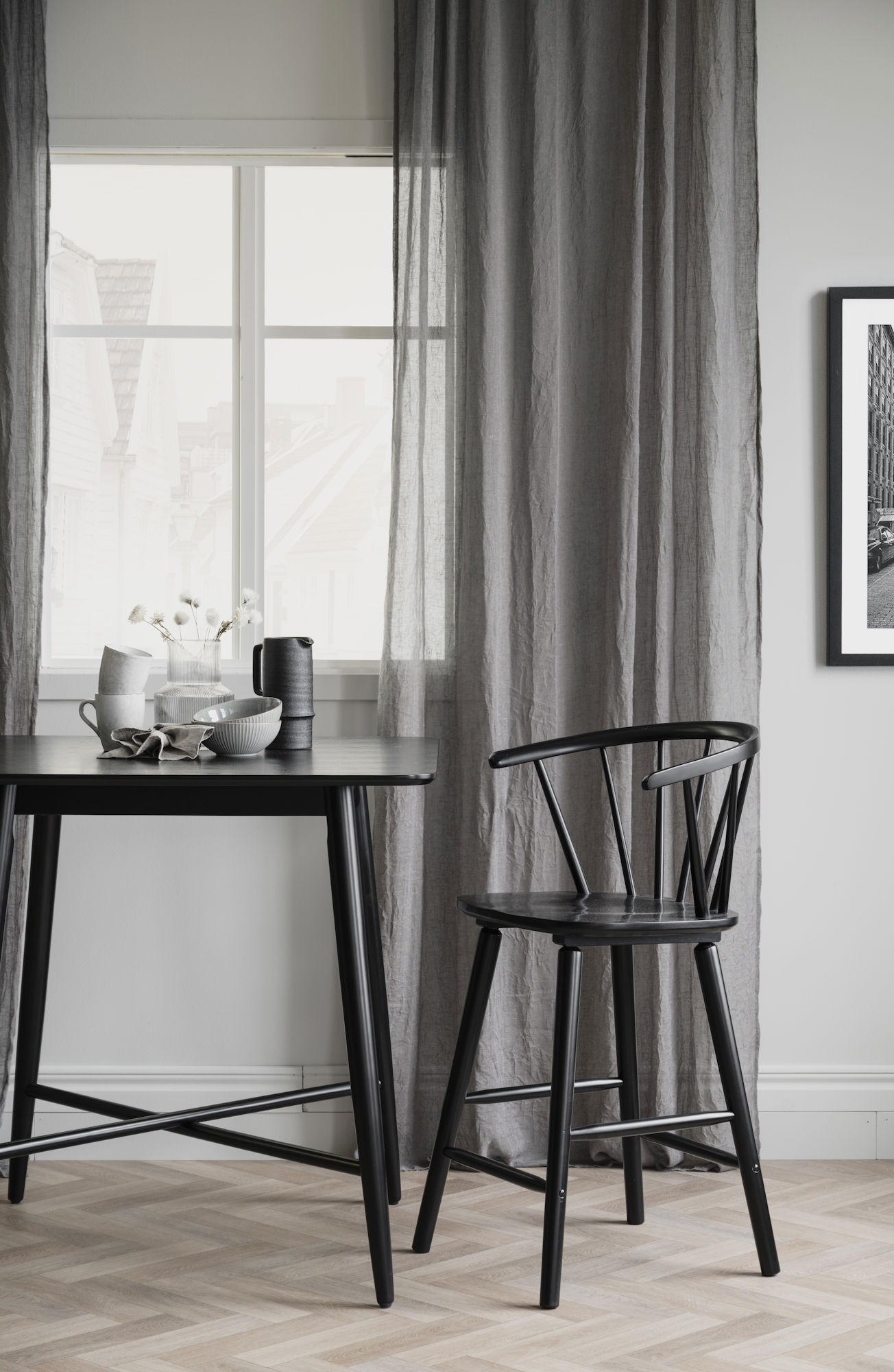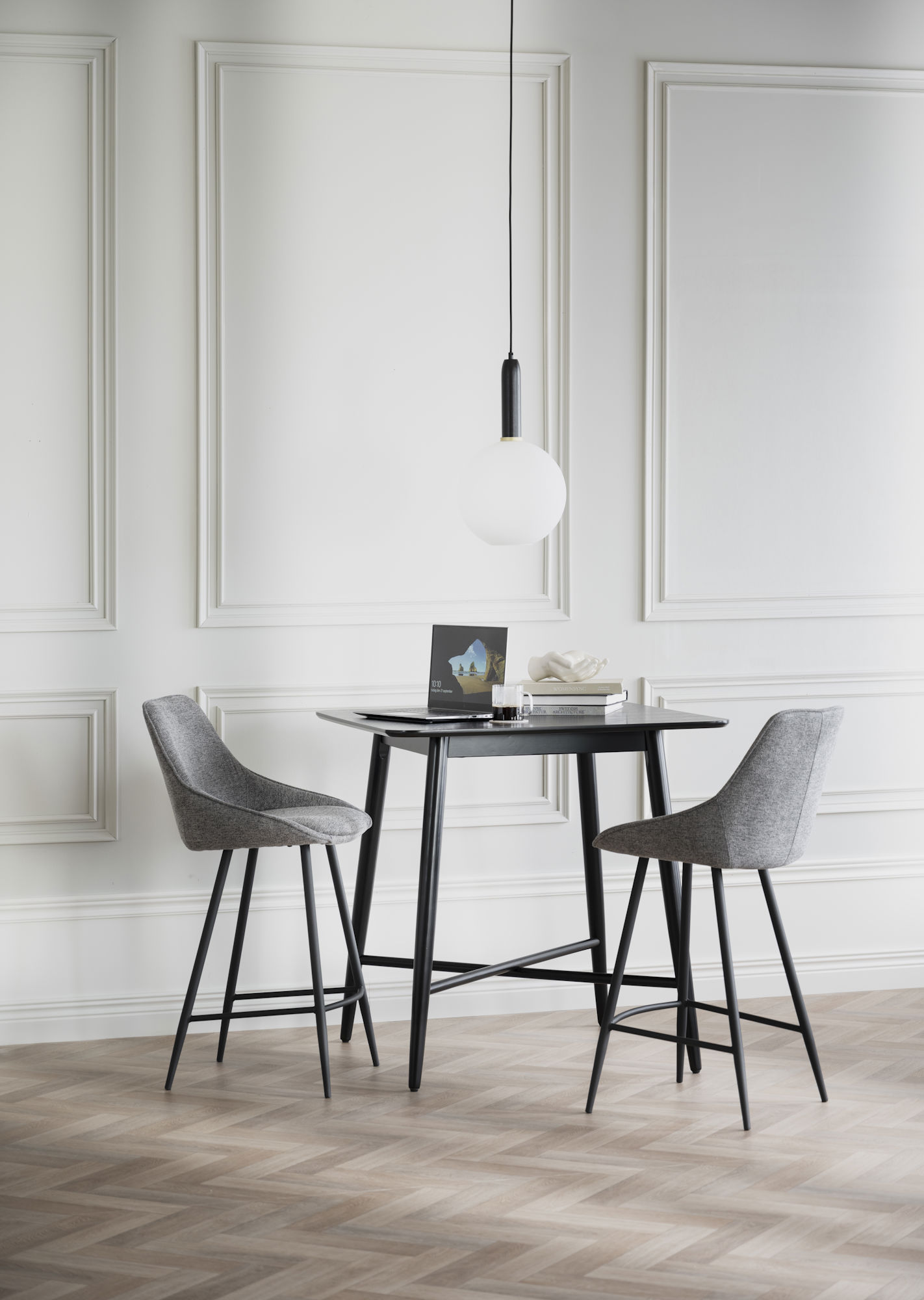 Lotta barbord i stilren skandinavisk design. Ett stadigt bord med en bordsyta i svartlackat trä som är lätt att torka av. Barbordet matchas snyggt med våra barstolar Carmen. I serien Lotta ingår även matbord i flera olika storlekar samt pinnstolar.