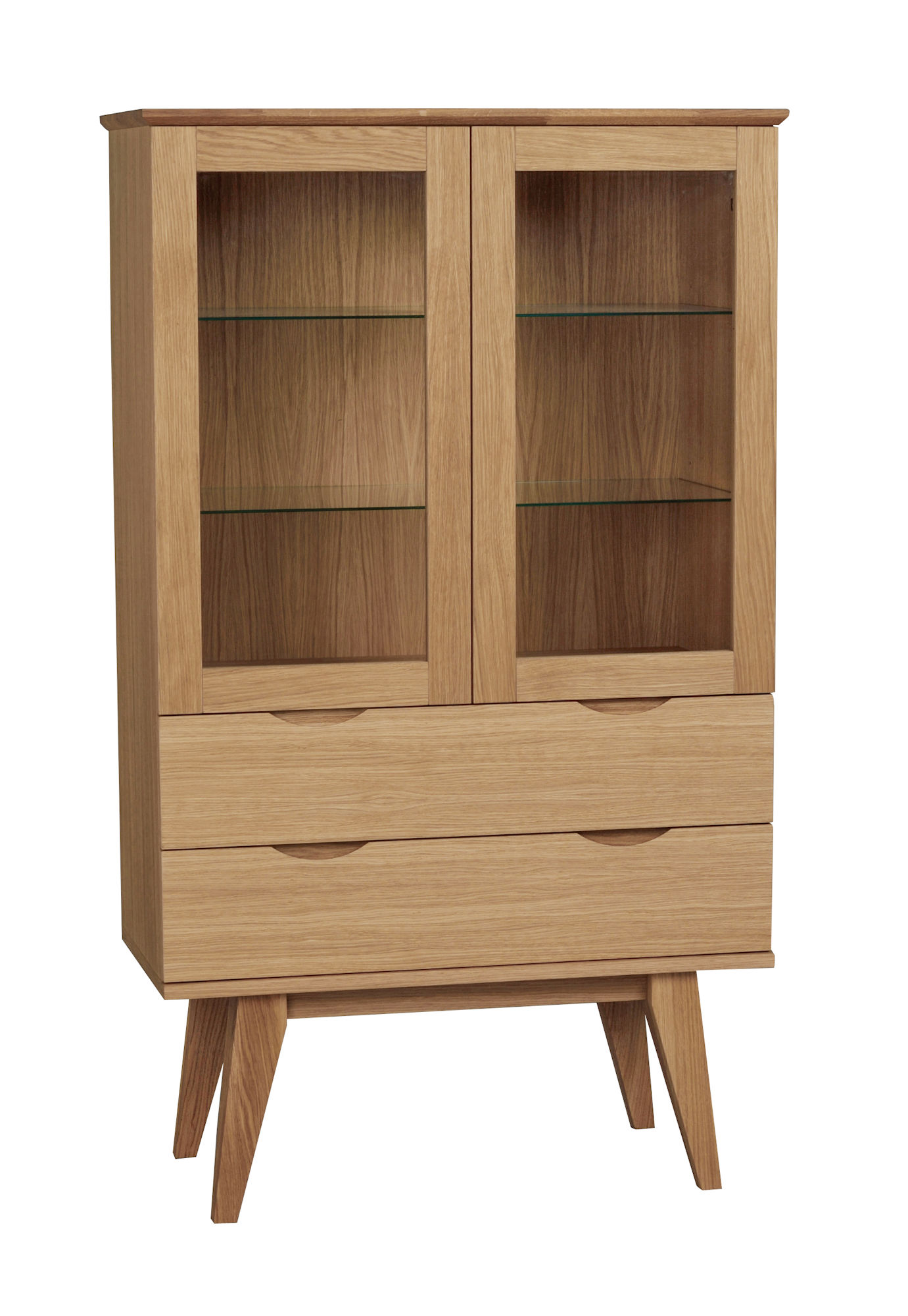 Stilsäkert vitrinskåp i oljad ek. Mjukstängande lådor och dörrar, sk soft-close, samt flyttbara hyllplan i härdat glas. Benen är lätt utställda vilket ger ett modernt uttryck. Vitrinskåpet ingår i vår breda Filippa-serie som även har flera matchande matbord i olika storlekar.