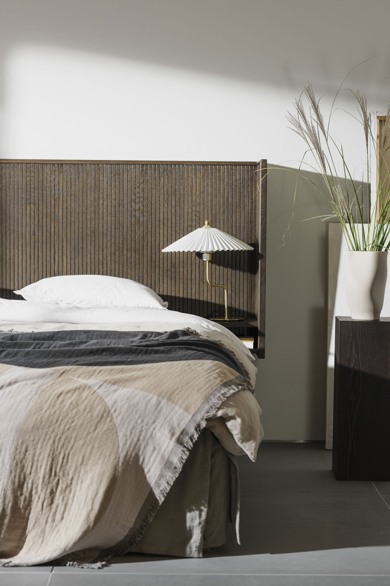 Redmond sänggavel är både elegant och exklusiv vilket ger dig en härlig hotellkänsla i ditt sovrum. Kombinera sänggaveln med pendellampor ovanför de integrerade sängborden och inredningsdetaljer i mässing för ett extra lyxigt intryck. Sänggaveln har ett dekorativt ribbat mönster i fin brun nyans och kan gärna placeras tillsammans med Clearbrook förvaring som har samma färg och vackra mönster. Redmond sänggavel passar perfekt till sängar som är 180 cm breda. Tack vare de justerbara metallbenen kan du själv välja höjd på sänggaveln, från 126 till 150 cm. Beslag för att fästa sänggaveln i väggen medföljer. Höjd exkl. ben: 85 cm.
