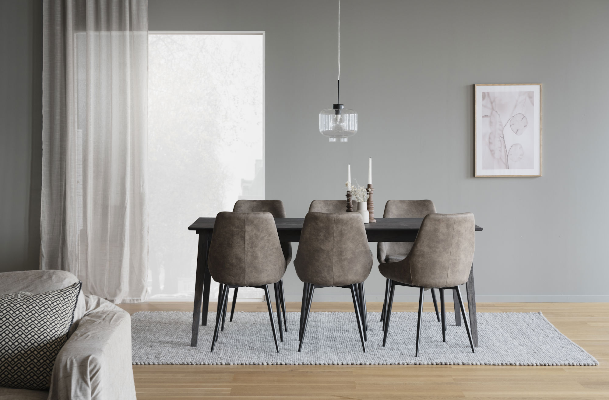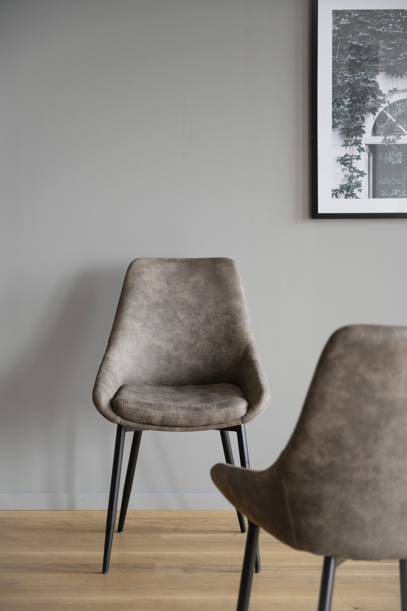 Populära Sierra stol i modern design med skön sittkomfort. Stolen finns i flera olika färger och passar perfekt i våra skandinaviska hem. Här syns den med sits i brunt microfibertyg. Tyget har hög slitagenivå och stolen har tåliga ben i svart pulverlackad metall. Sierra stol passar utmärkt runt matbordet men även som udda stol i hallen, sovrummet eller till skrivbordet.
