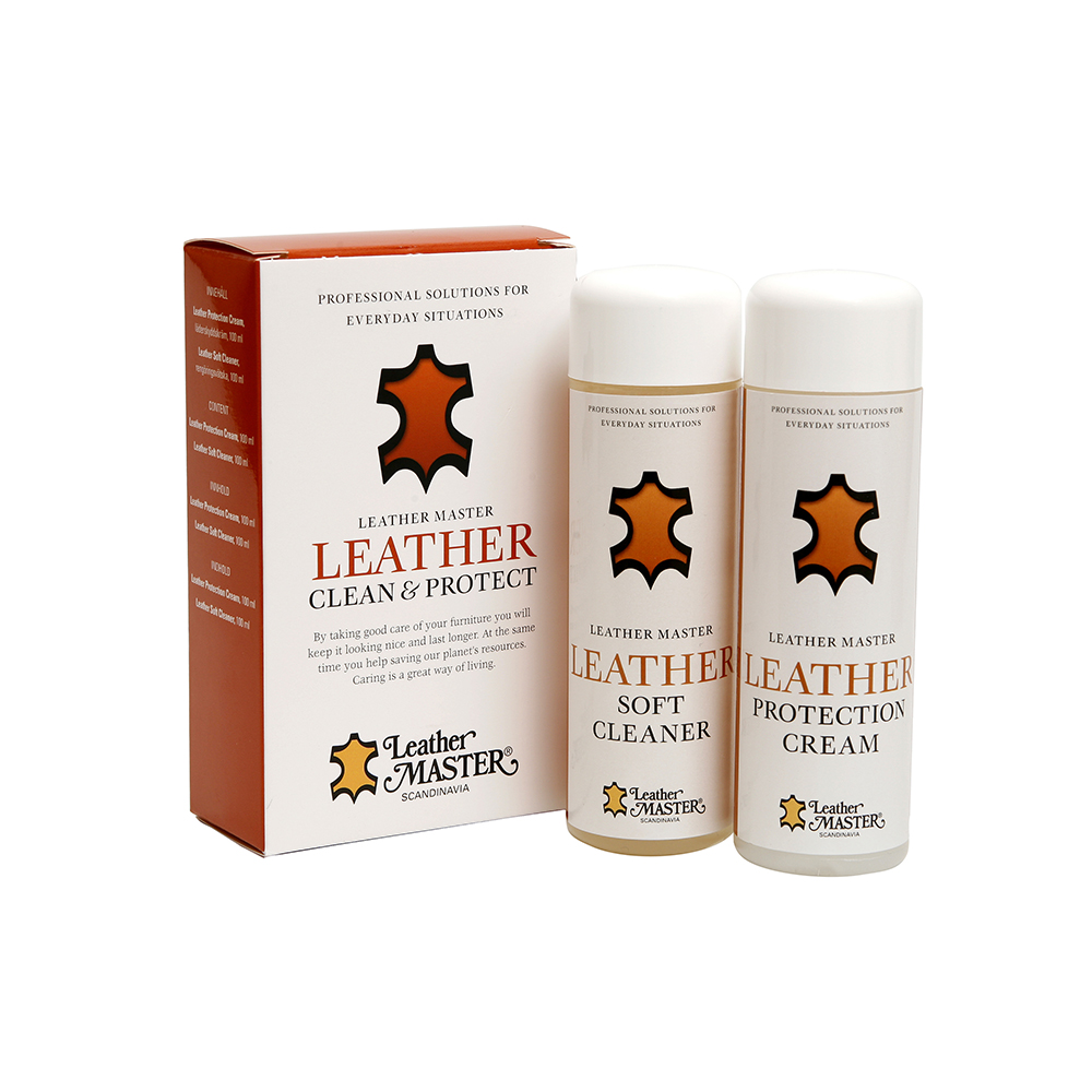 Vårt äldsta och mest beprövade kit för möbelvård, innehållande mild rengöring och effektiv skyddskräm för läder. Används för den vardagliga skötseln av anilin, semianilin och täckfärgat läder. Finns i två olika storlekar: Maxi (1-1500100) och Mini(1-1500103).