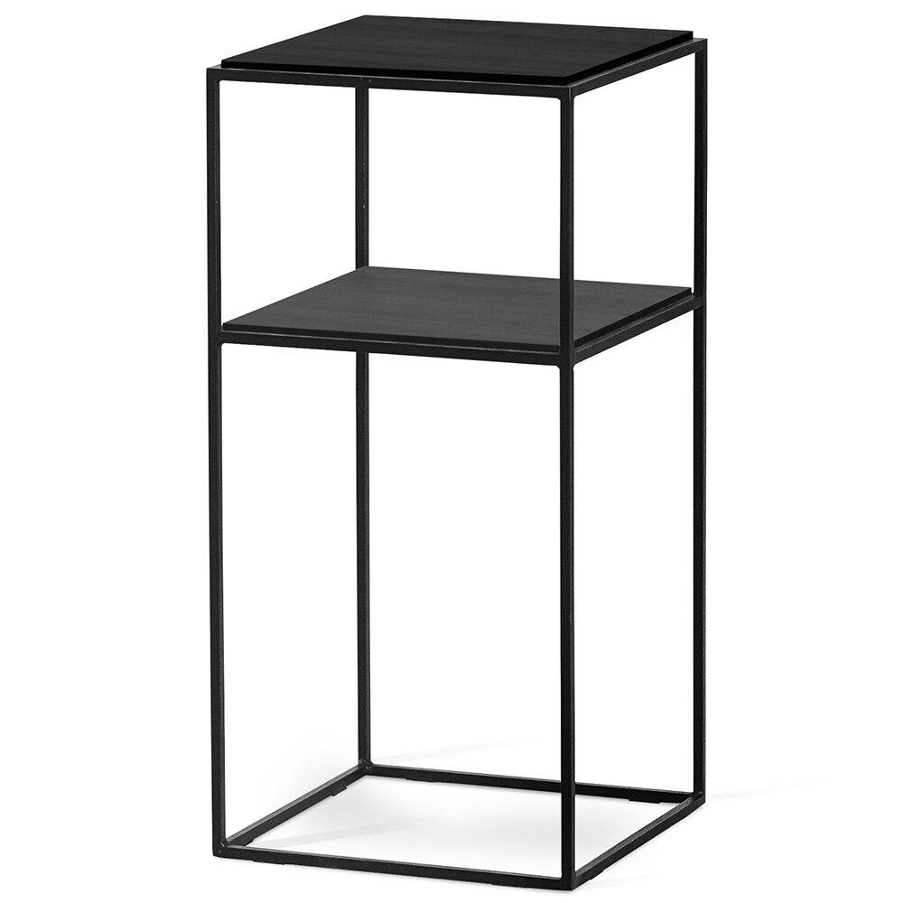 Lime sängbord. Toppskiva i svartbetsad ask med underrede i helsvetsad svart metall. Finns i flera utföranden.
