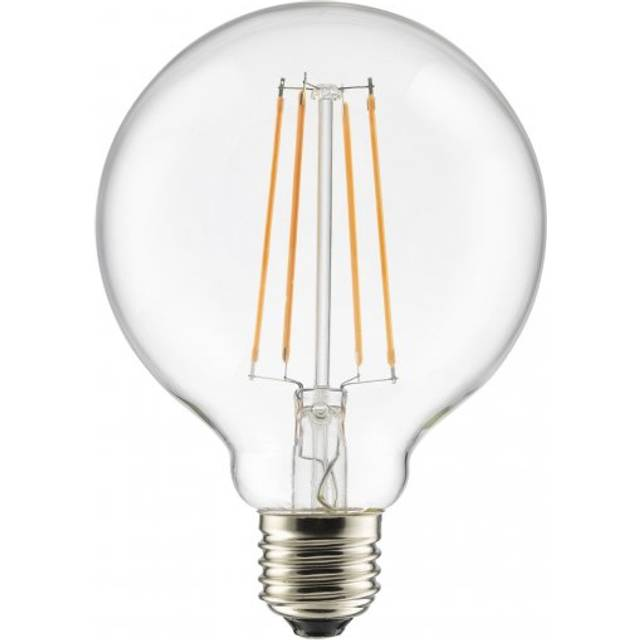 Dekorativ stor globformad glödlampa med E27-sockel. LED om 7W. Varmt ljus 2200K. Energiklass A+
