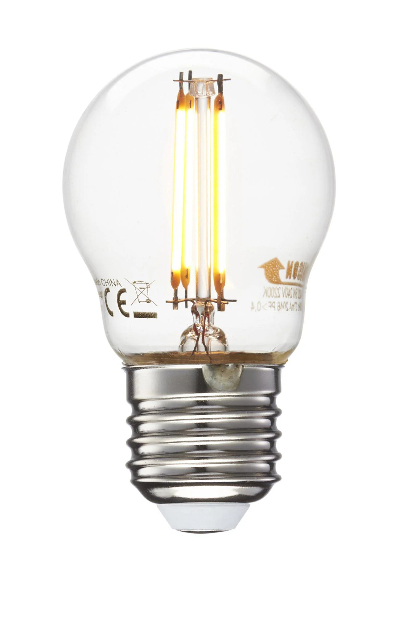 Dekorativ klotformad glödlampa med E27-sockel. LED om 4,5W. Varmt ljus 2200K. Energiklass A+