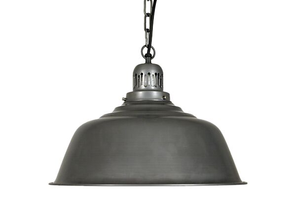 Läcker och robust taklampa i råjärn med dekorativ kedja som upphäng.