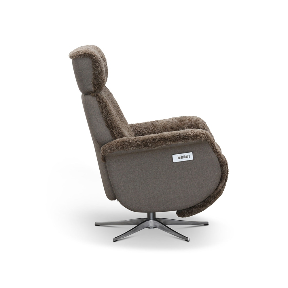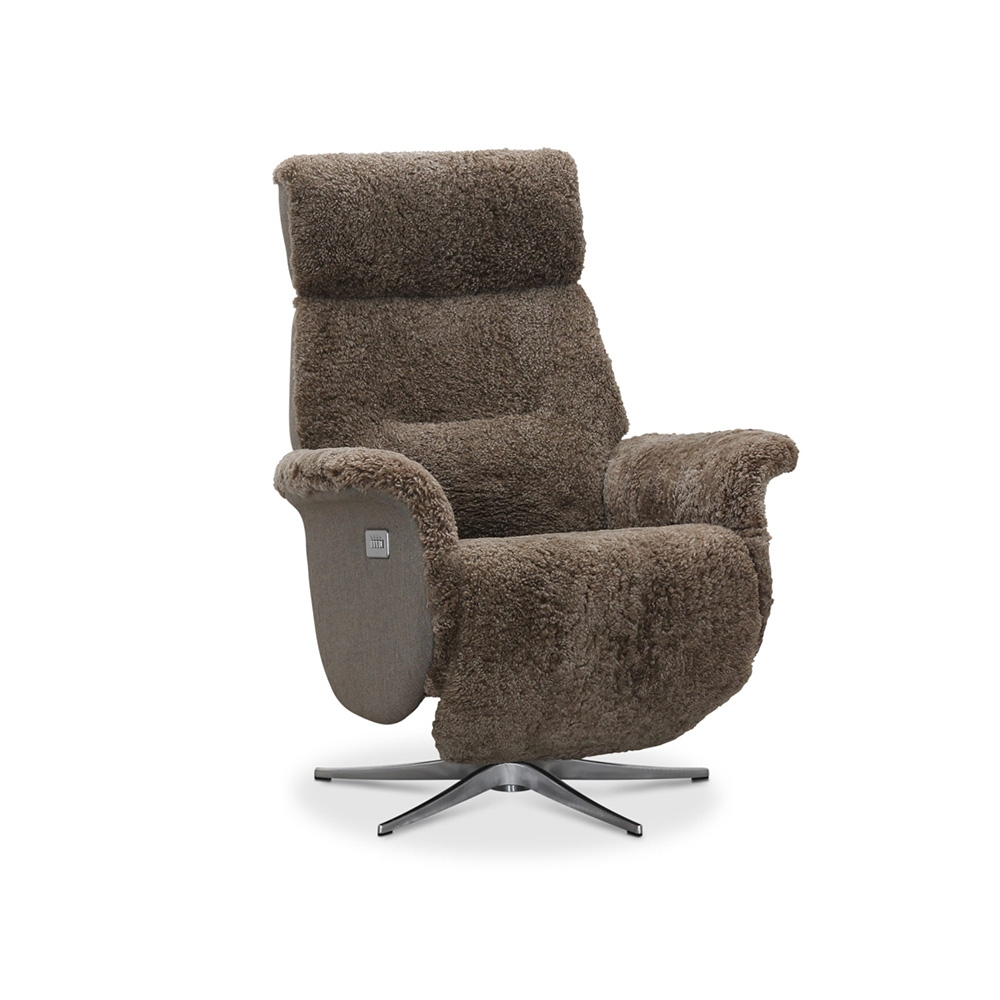 Lissabon fåtölj flip-up motorrecliner fårskinn sahara