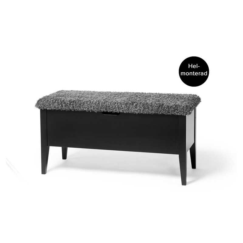 Välj mellan olika klädslar på toppen – grå fårskinnsimitation, äkta fårskinn, ljusgråa tyget Chelsea eller bruna tyget Abriamo. På insidan av bänken finns ett rymligt fack med en praktisk skiljevägg, som även går att tas bort för att göra plats för större föremål.