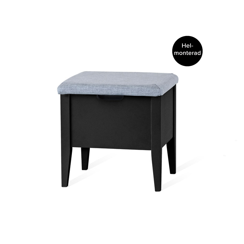 Klinte bänk 45 cm svartlack med tyg Chelsea ljusgrå