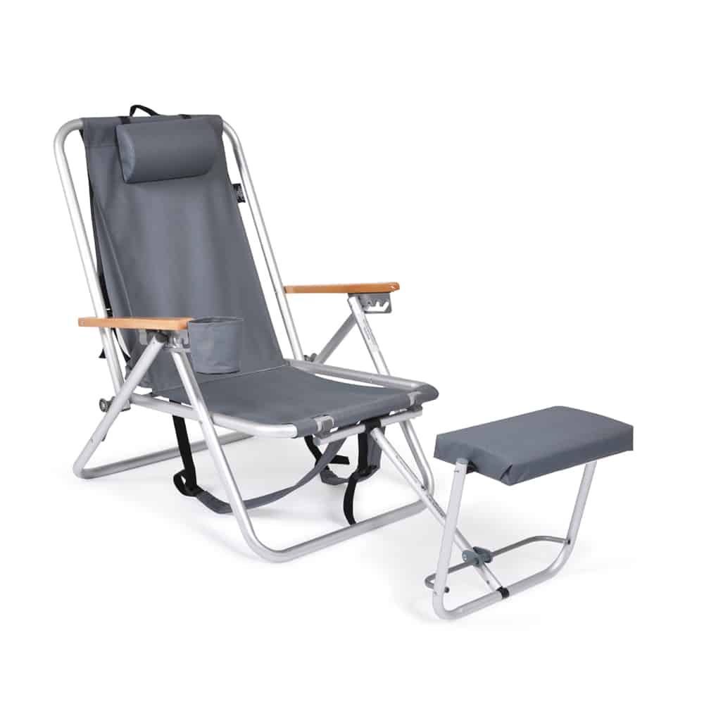 Roxy, sommarens smartaste stol med flera praktiska funktioner. Stolen fungerar som ryggsäck när den är hopfälld och innehåller nackkudde, fotstöd, mugghållare, data-/tidningsbord och två stycken förvaringsfack.