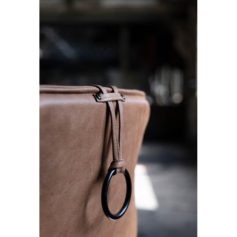 Chic fåtölj gung med fotpall skinn vintage cognac/svart metall