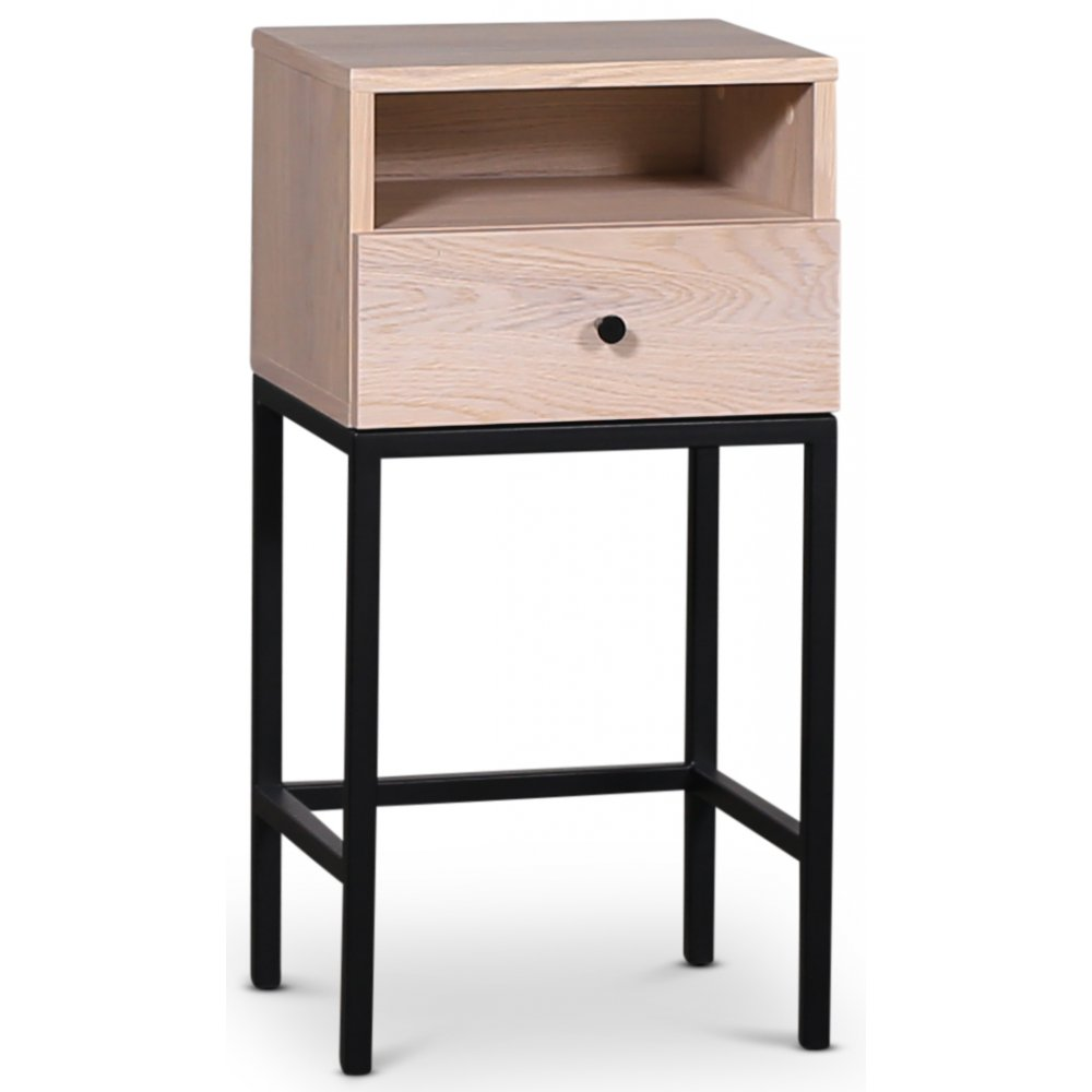 Stilo är ett väldigt välgjord sängbord i whitewash ek/svart metall. Denna variant har en låda och ett förvaringsfack. Kommer delvis monterat.