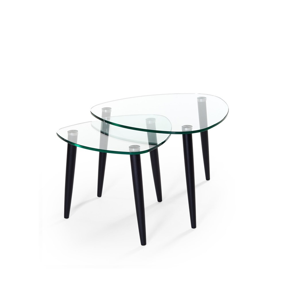 Clear soffbord är ett soffbord med härdad glasskiva och snygga träben i fem olika träslag/färger. Borden kan med fördel användas som satsbord om man väljer båda storlekarna. Borden säljs separat. Välj till hjul för mer flexibilitet. Svensktillverkat!