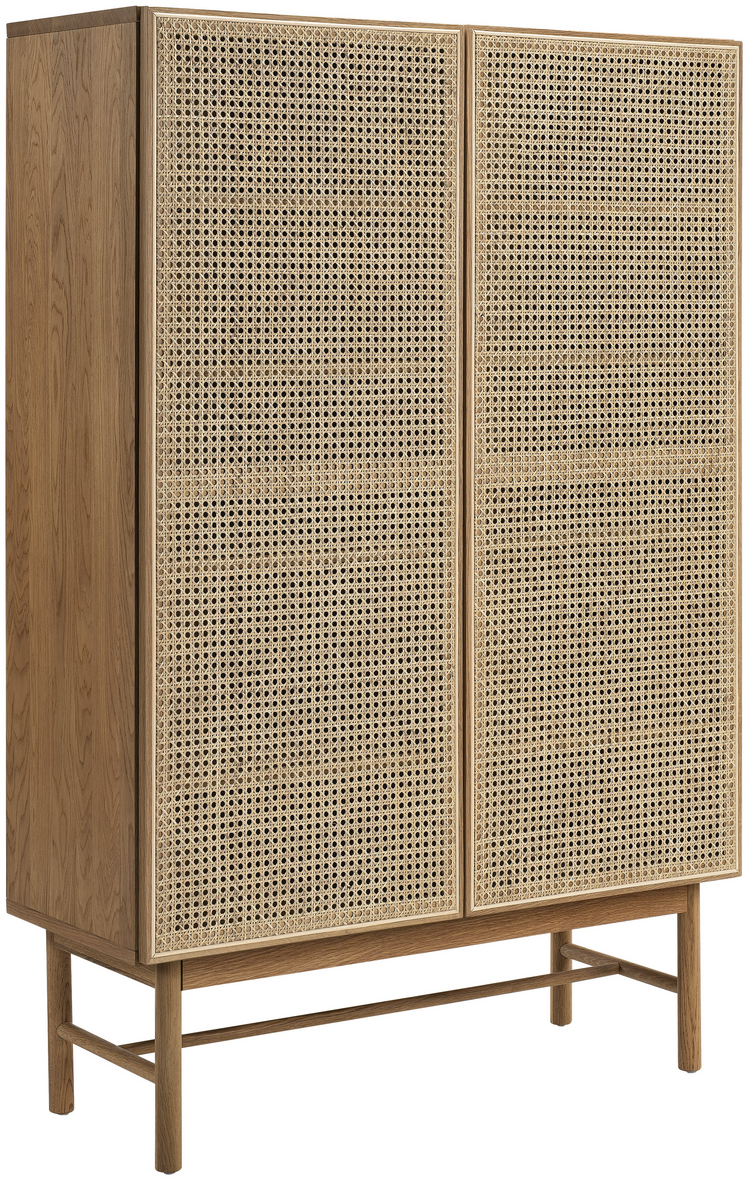 Racquet vitrin från Hans K med stomme i oljad ek och luckor i rotting. Design av Jannis Ellenberger. Ett snyggt, stilrent skåp med bra förvaringsmöjligheter.