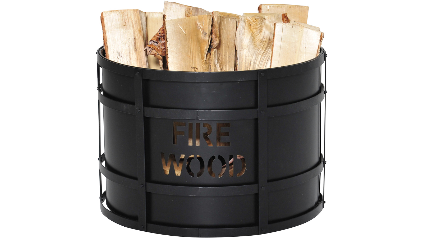 Läcker vedkorg i härligt rå design. Helt i svart metall.