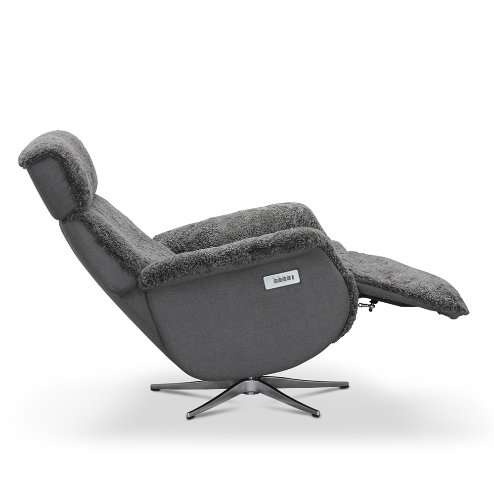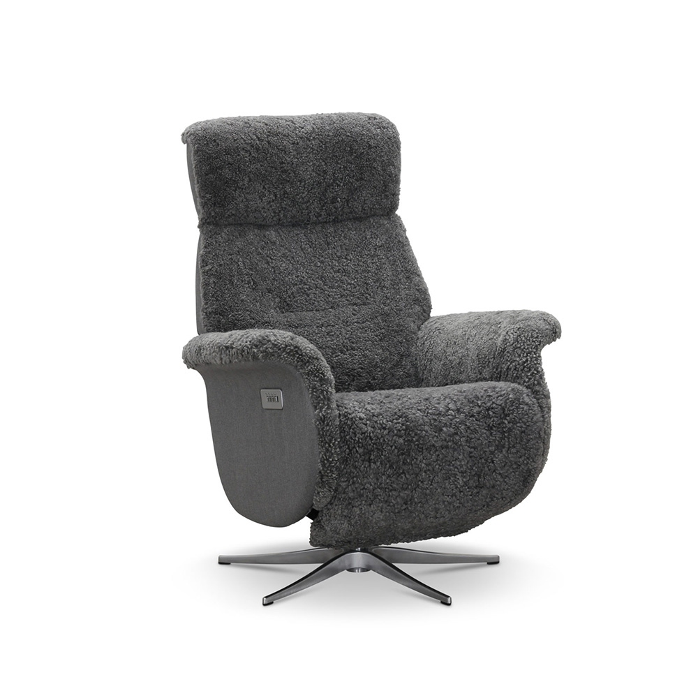 Lissabon fåtölj flip-up motorrecliner fårskinn ljusgrå