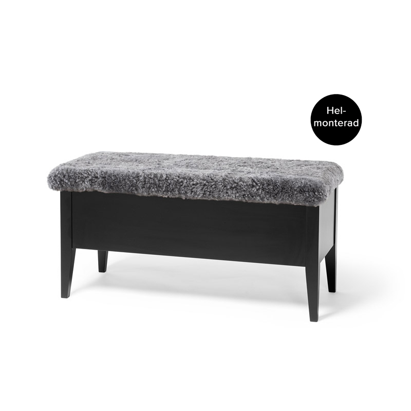 Klinte bänk 45 cm svartlack med äkta fårskinn