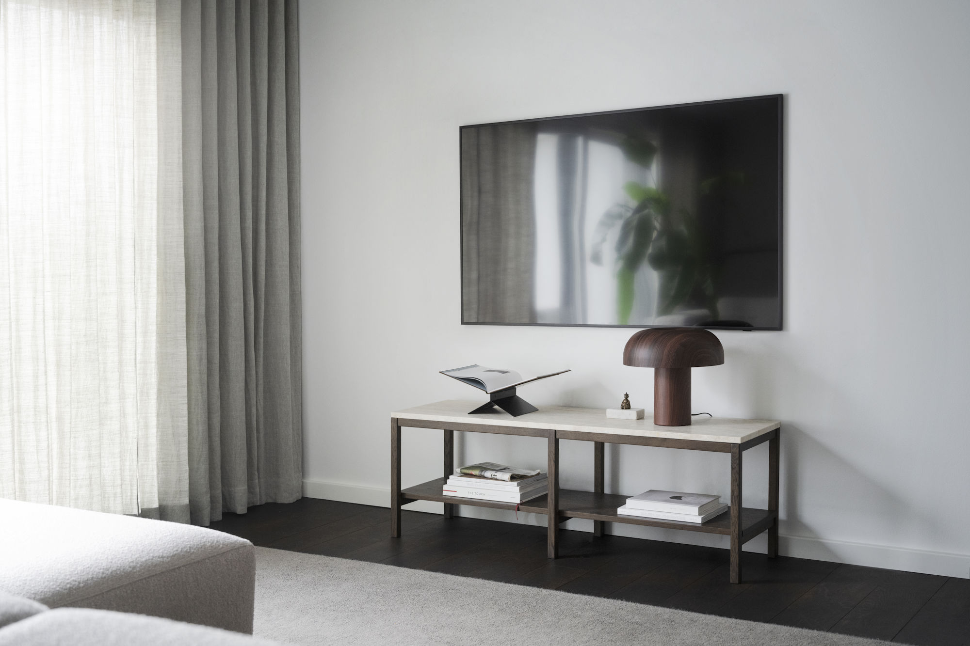 Avlastningsbordet Orwel H45 cm har en exklusiv stenskiva av sandfärgad travertin från Italien som vilar på en stomme av brunlackad FSC-certifierad ek. Travertin är en kalkstenstyp med fina skiftningar som ger avlastningsbordet en naturlig skönhet och med tiden unik patina. Den låga höjden passar perfekt framför ett fönster eller varför inte som tv-bänk? Orwel andas skandinavisk design med det enkla och eleganta formspråket där hållbara material förenas i en vacker helhet. I kollektionen Orwell ingår även avlastningsbord H75 cm samt ett soffbord.
