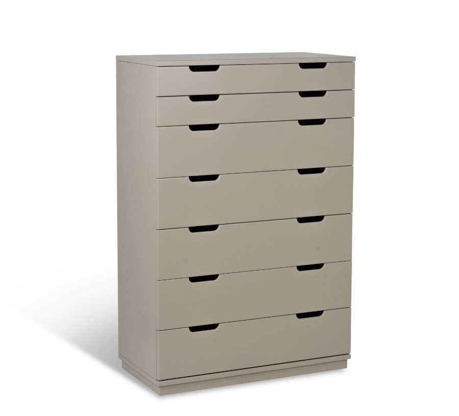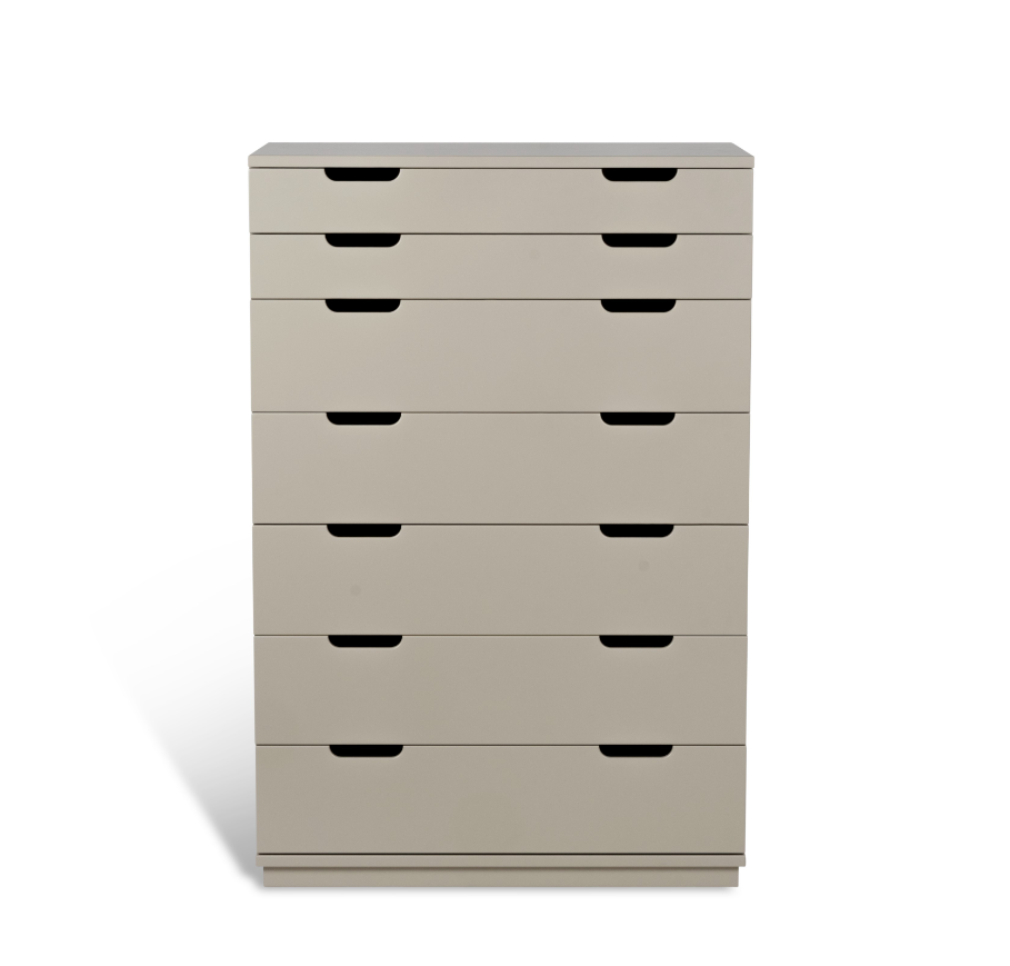 Aoko är en stabil och rejäl byrå med 7 rymliga lådor. Står stabilt på golvet med subtil sockel undertill vilket ger byrån ett lätt och svävande intryck. Med vackert urfrästa handtag, det behöver inte vara mer komplicerat än så. Lådor i plywood med underliggande mjukstängande skena. Levereras monterad.