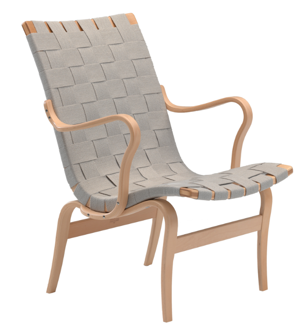 Mi 472 fåtölj Eva låg rygg armstöd Björk/bok klarlack/linnegjord natur