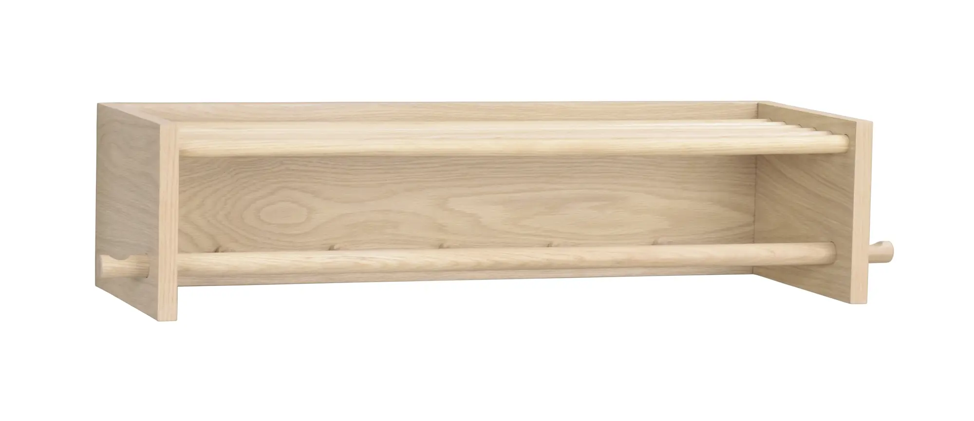 Hillmond hatthylla i vitpigmenterad ek skapar en välkomnande atmosfär i ditt hem och ger din hall en varm känsla. Hatthyllan har 5 krokar plus 2 extra på sidorna samt en klädstång till galgar för optimal förvaring. Kollektionen Hillmond är synonymt med hög kvalitet, vackra trädetaljer och harmonisk skandinavisk design. De runda formerna som möter de raka linjerna skapar en balans som är både vacker och funktionell. Kombinera gärna hatthyllan med andra produkter från kollektionen Hillmond för en enhetlig stil.