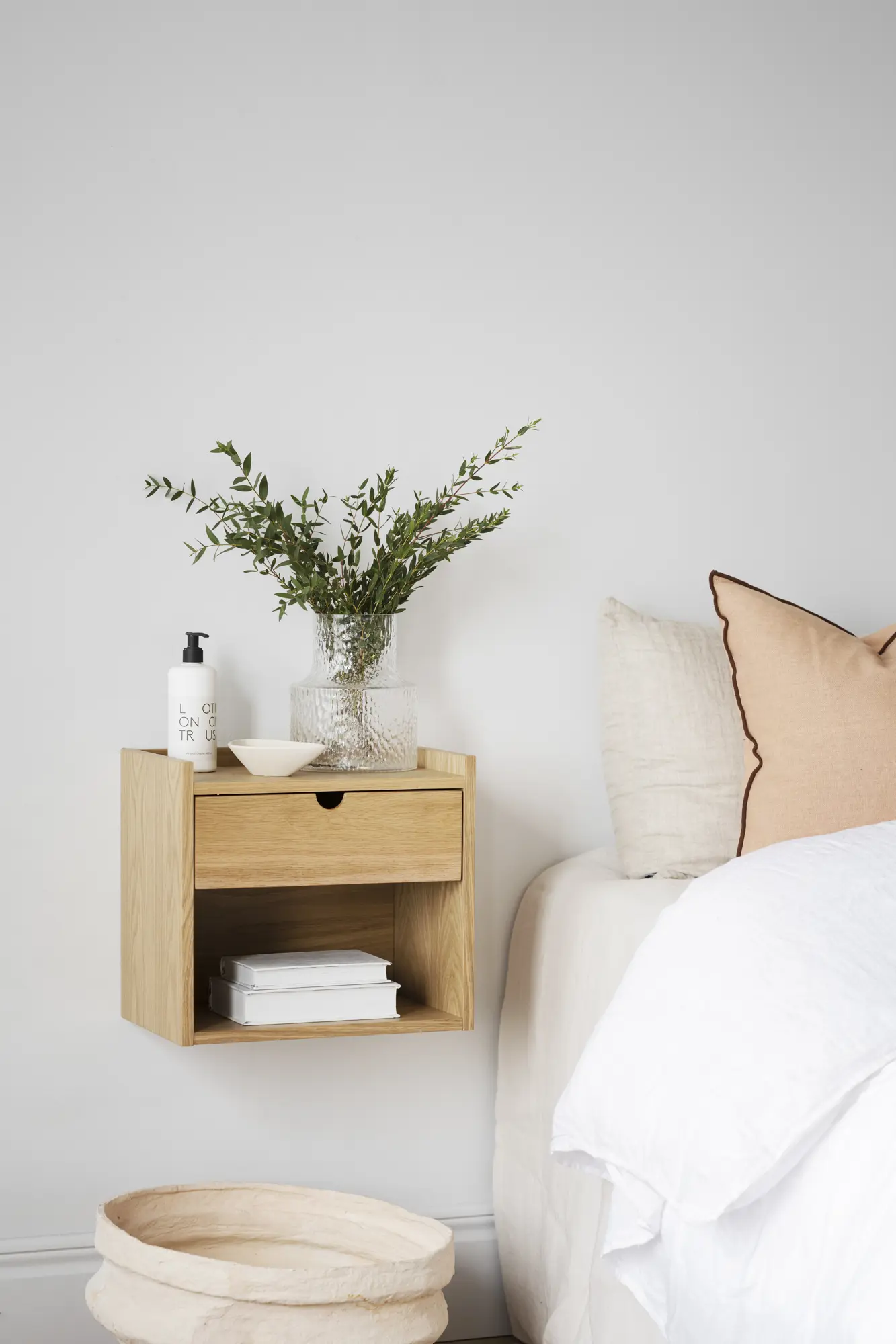 Hillmond vägghylla/sängbord i lackad ek passar perfekt både i hallen och sovrummet. Tack vare den enkla skandinaviska designen och den höga kvaliteten är vägghyllan en möbel att älska i många år framöver. Den mjukstängande lådan erbjuder praktisk förvaring för dina vardagsprylar och hjälper till att hålla ditt hem rent och organiserat. Kombinera gärna vägghyllan/sängbordet med andra produkter från kollektionen Hillmond för en enhetlig stil.