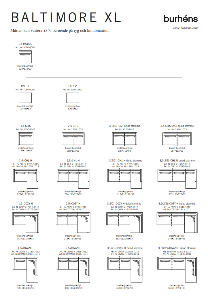 Modern soffa med härligt XL djup. Baltimore XL har en riktigt skön komfort. Tyg- eller läderklädsel. Modellen finns med både fast- eller avtagbar klädsel. Ben går att få i sex olika färger.