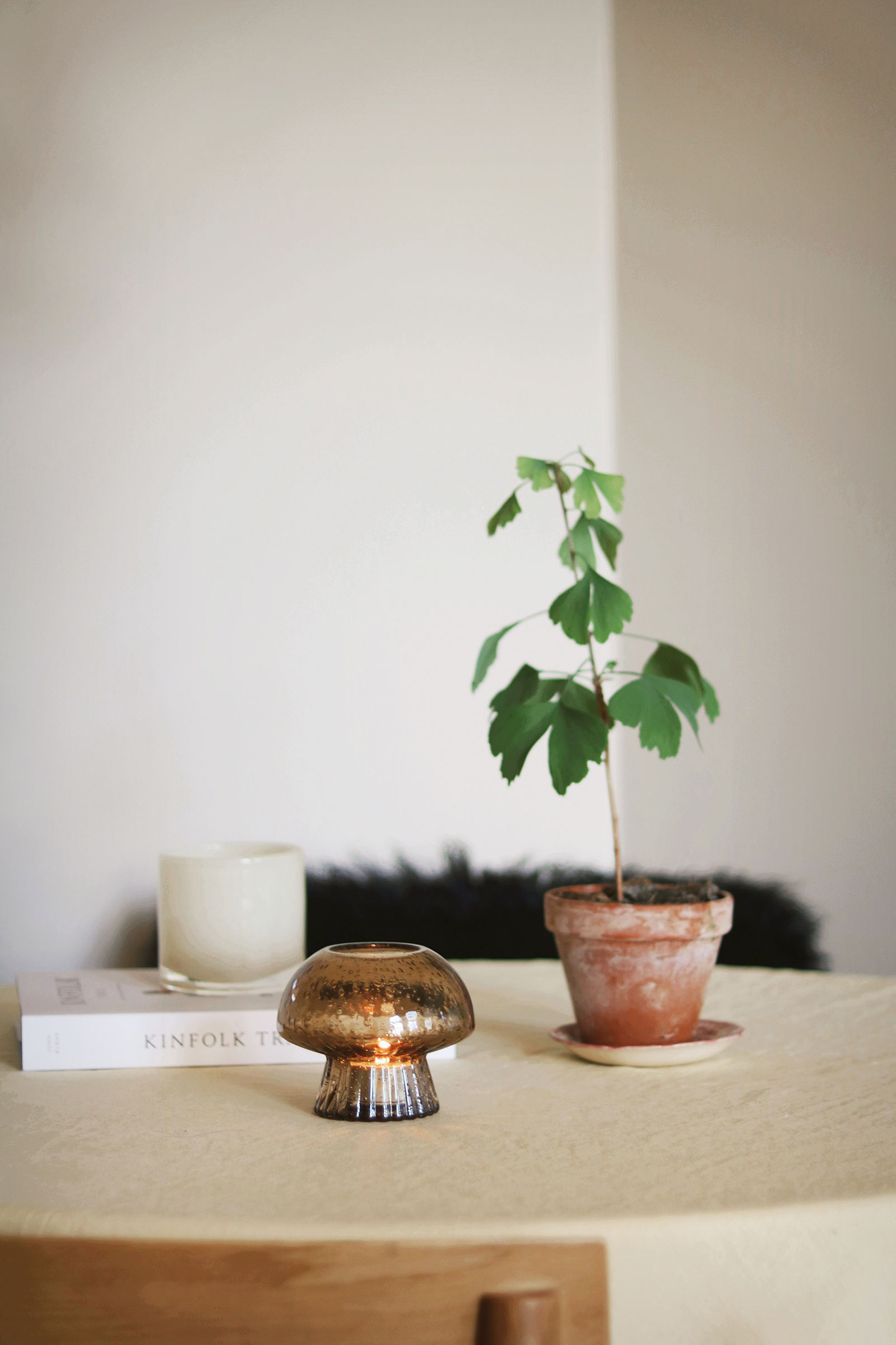 Fungo är en värmeljushållare av munblåst glas med luftbubblor, den sprider ett mjukt och behagligt sken. Varje del är handmålad och unik, vilket gör att variationer i färg och antal bubblor kan förekomma. Fungo är mångsidig och kan även användas som en mindre vas för blommor.