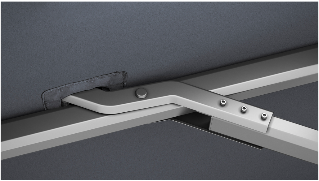 Det lyxiga flerfärgade 240 grams Spuncrylic premiumtyget i färgen Manhattan förblir estetiskt tilltalande under lång tid, är färgäkta och erbjuder optimalt skydd mot solen; upp till 98% UV-skydd. Tyget är försett med en vatten- och smutsavvisande beläggning och dragfjädrar.