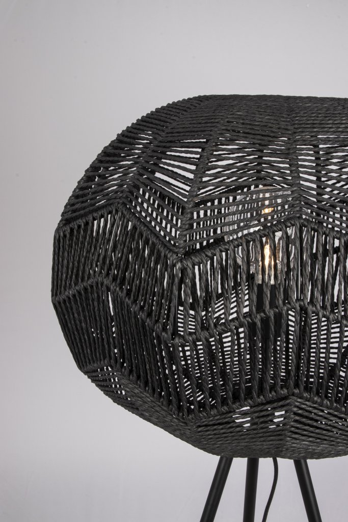 Missy golvlampa med skärm i tvinnad svart rotting och tre stycken mattsvartlackade ben. Höjden på lampan kan varieras genom att skruva av delar benen. Välj mellan 4 olika höjdlägen. Lampan har en 200 cm lång svart textilkabel med brytare.