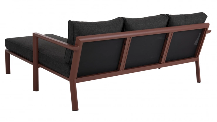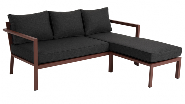 Delia divansoffa passar perfekt på mindre ytor så som balkongen. Divandelen kan lätt flyttas från höger till vänster sida. Modernt formspråk med snyggt utformade detaljer på ben och stomme och utmärkt sittkomfort. Stomme i aluminium och dynor i olefintyg.